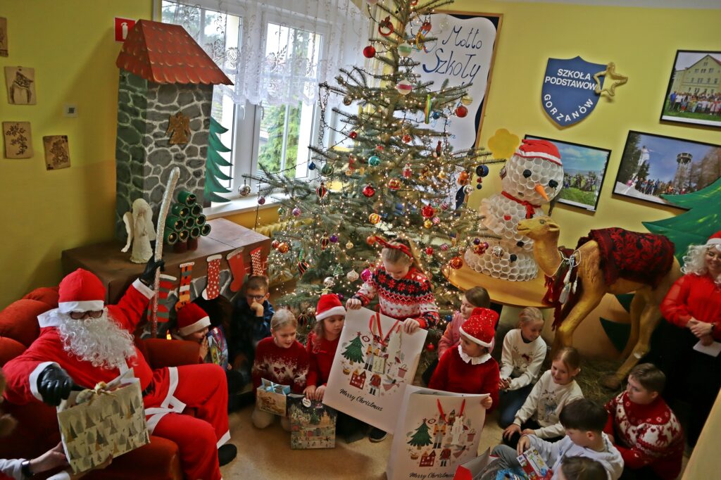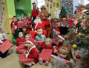 Najmłodsi, pełni entuzjazmu i świątecznego ducha, wręczyli Mikołajowi własnoręcznie wykonane kartki z jego podobizną. Nie zabrakło również świątecznych strojów – od swetrów z reniferami po czapki z dzwoneczkami, które stworzyły atmosferę pełną magii i radości.