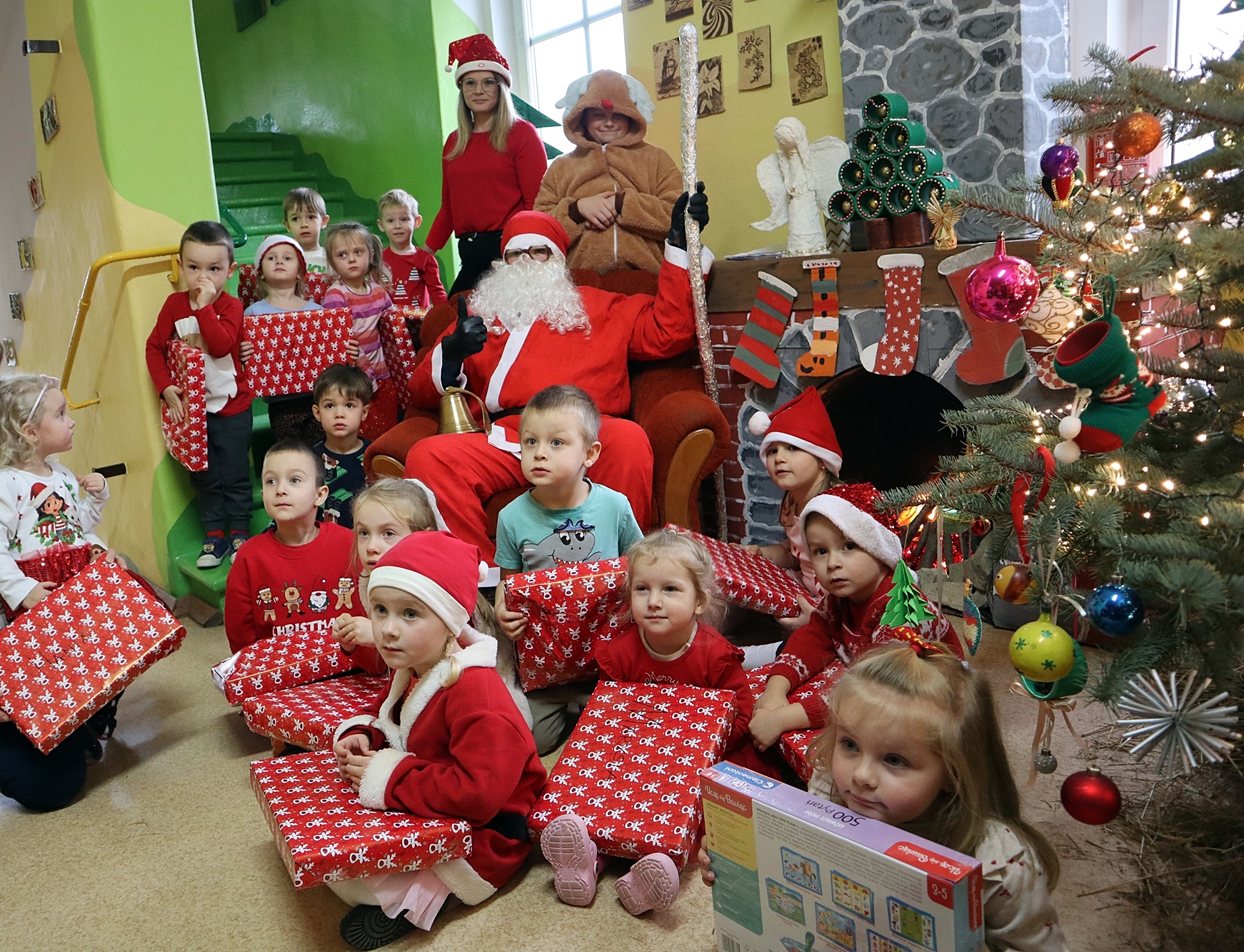 Wszyscy zgromadzeni podziękowali Świętemu Mikołajowi i jego pomocnikom za tę wspaniałą wizytę, obiecując, że będą równie grzeczni w nadchodzącym roku.