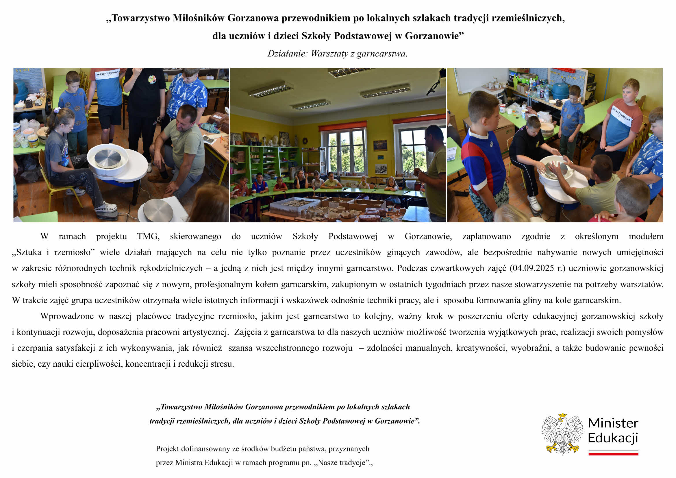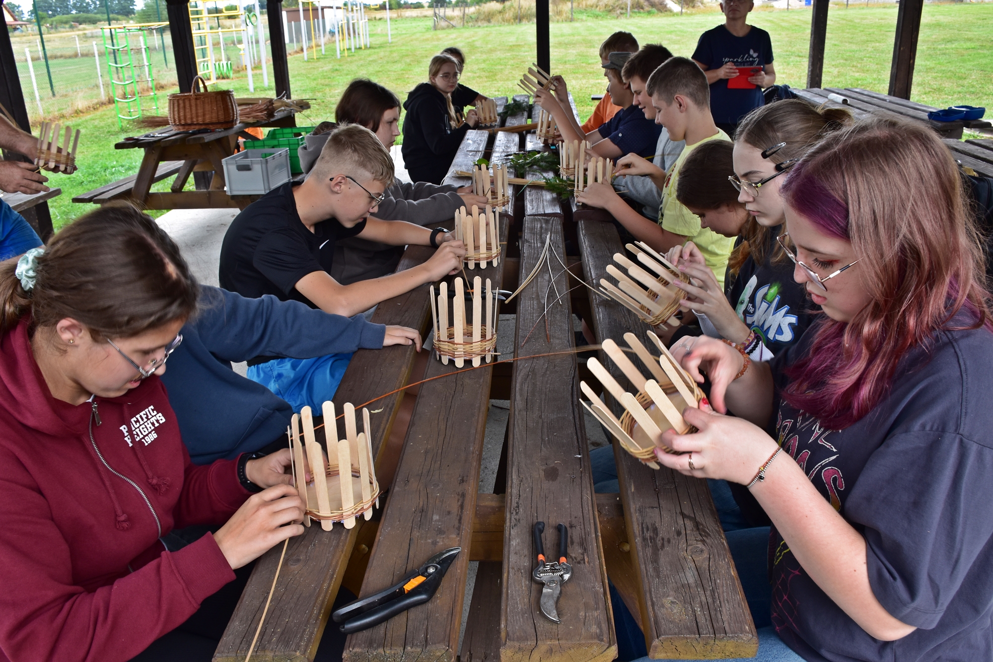 W piątek 05.09.2025 r. uczniowie klas II-VIII naszej Szkoły Podstawowej rozpoczęli kolejny cykl warsztatów rękodzielniczych. Po czwartkowych zajęciach z garncarstwa, tym razem społeczność uczniowska mogła poznać wikliniarstwo. W pierwszych zajęciach dzieci i młodzież poznała czym jest wiklina oraz z jakich materiałów można wykonywać różne przedmioty, użytkowe bądź też ozdobne, cenione za trwałość, estetykę czy przyjazność dla środowiska. Uczniowie mogli również samodzielnie spróbować swoich sił wykonując już pierwsze koszyki. To była kolejna cenna lekcja wymagająca od naszych uczniów wiele precyzji i cierpliwości w sztuce jaką jest wikliniarstwo. Minione warsztaty to także forma przekazania istotnych wartości, w tym m. in. szacunku dla tradycji i dziedzictwa kulturowego co jest niezwykle ważne w edukacji młodego pokolenia. Niniejsza inicjatywa to także możliwość zrozumienia i docenia pracy poprzednich pokoleń ale i rozwój nowych umiejętności, które mogą okazać się przydatne w przyszłości.