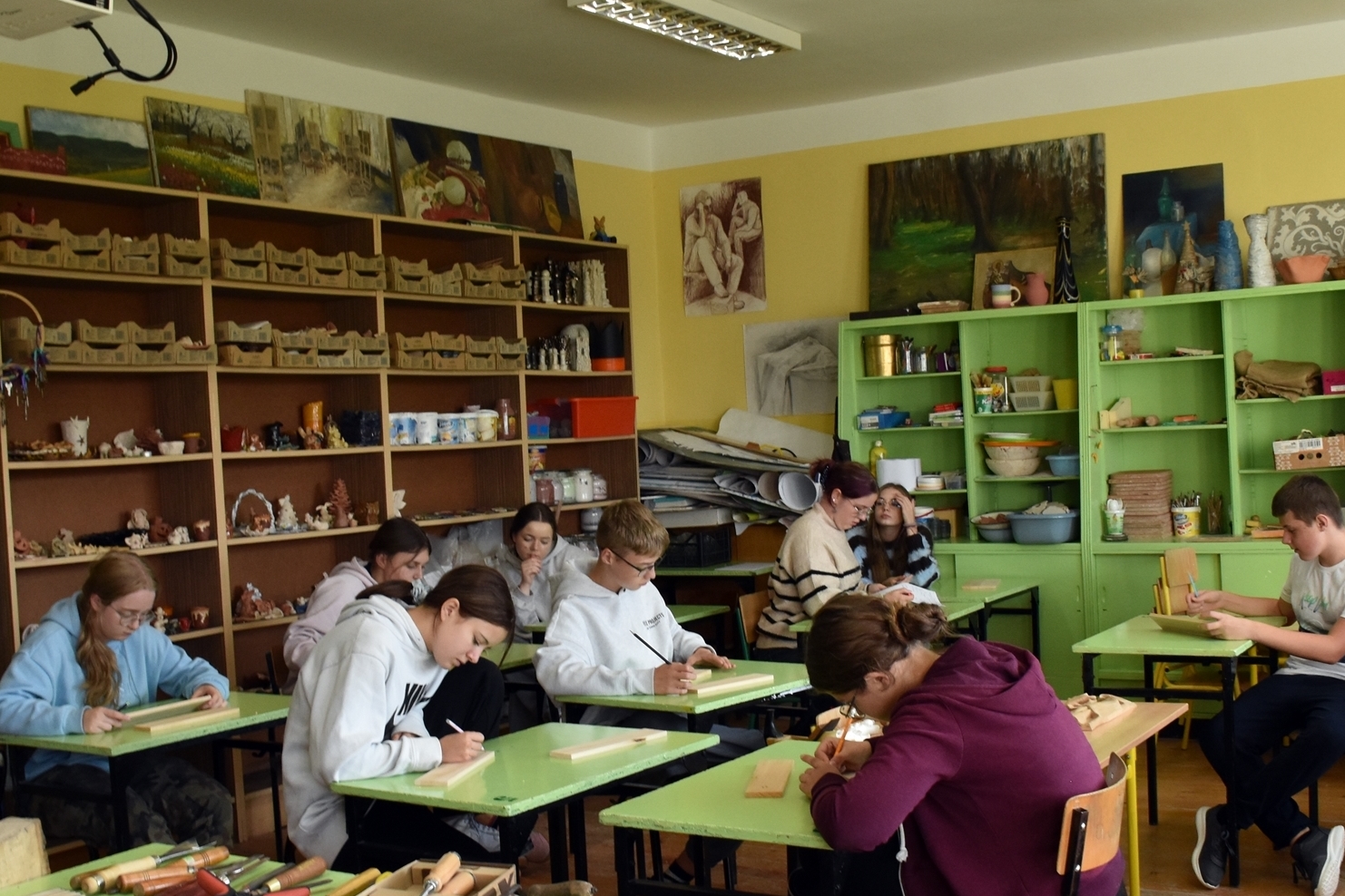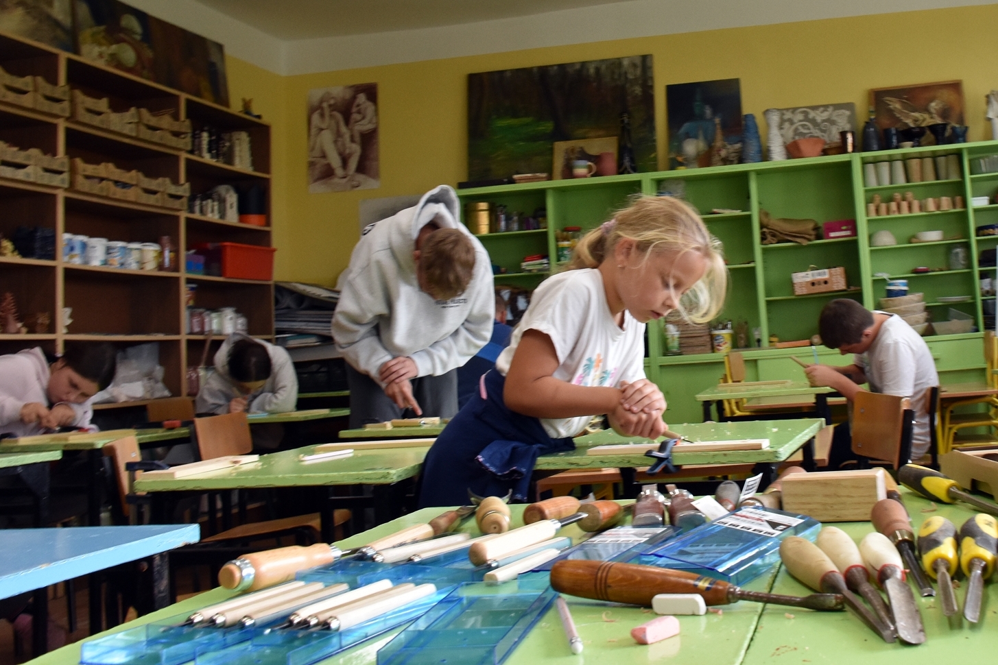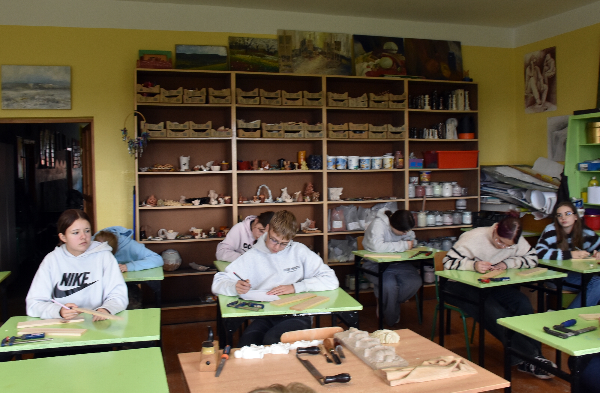 Podczas zajęć, po wprowadzeniu w tematykę rzeźby w drewnie, płaskorzeźby, drzeworytu, linorytu i trasowania, uczniowie mogli poznać liczne narzędzia stolarskie i snycerskie oraz przykładowe prace rzeźbiarskie. Po słowach wstępu omówiono podstawowe zasady bezpieczeństwa, co było kluczowe dla rozpoczęcia pierwszych prac z narzędziami. Pod czujnym okiem Prowadzącego oraz Wychowawców zapewniających dodatkową kontrolę, opiekę i wsparcie, uczniowie przy wykorzystaniu zakupionych w ramach projektu japońskich dłut rzeźbiarskich