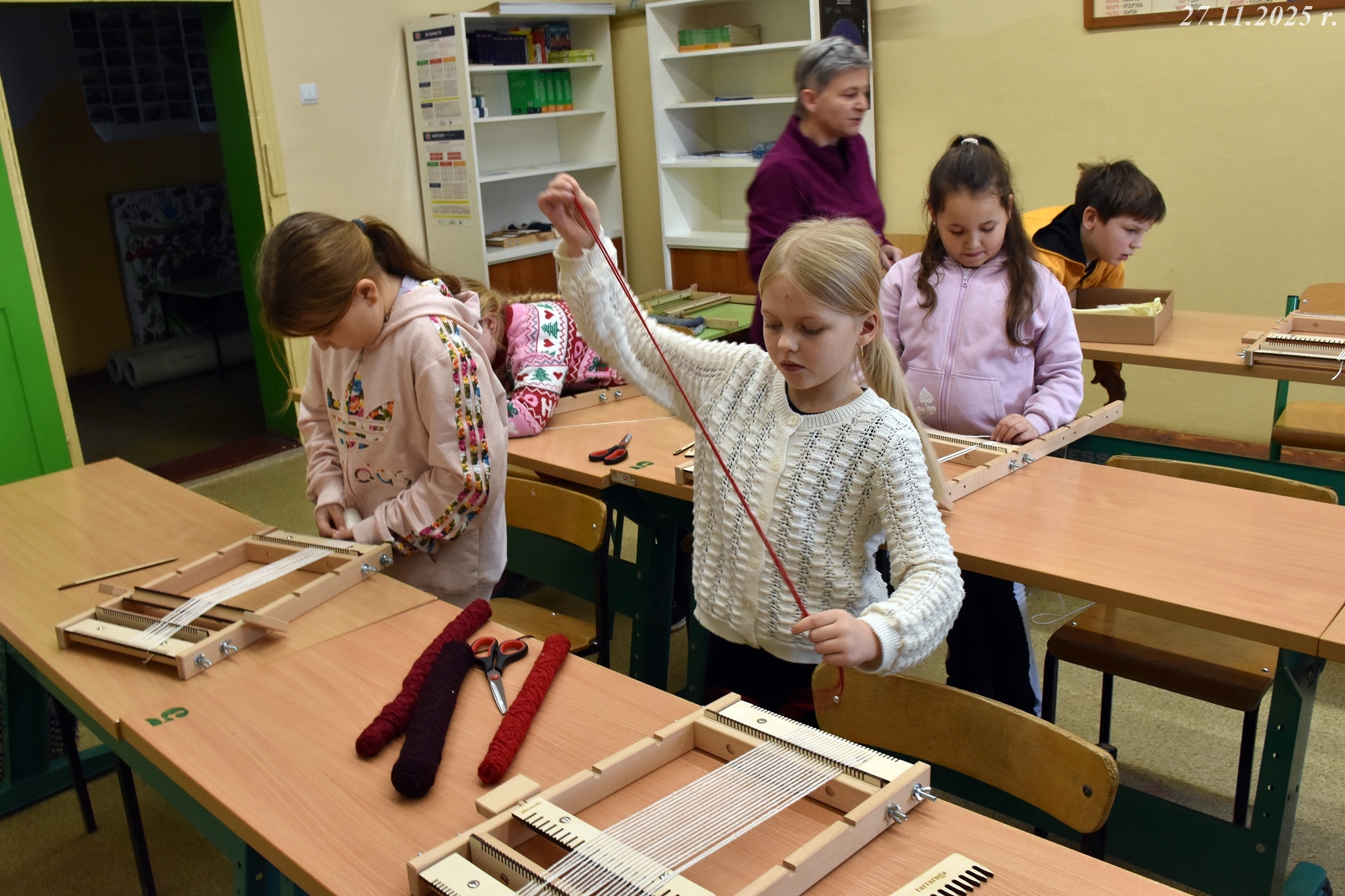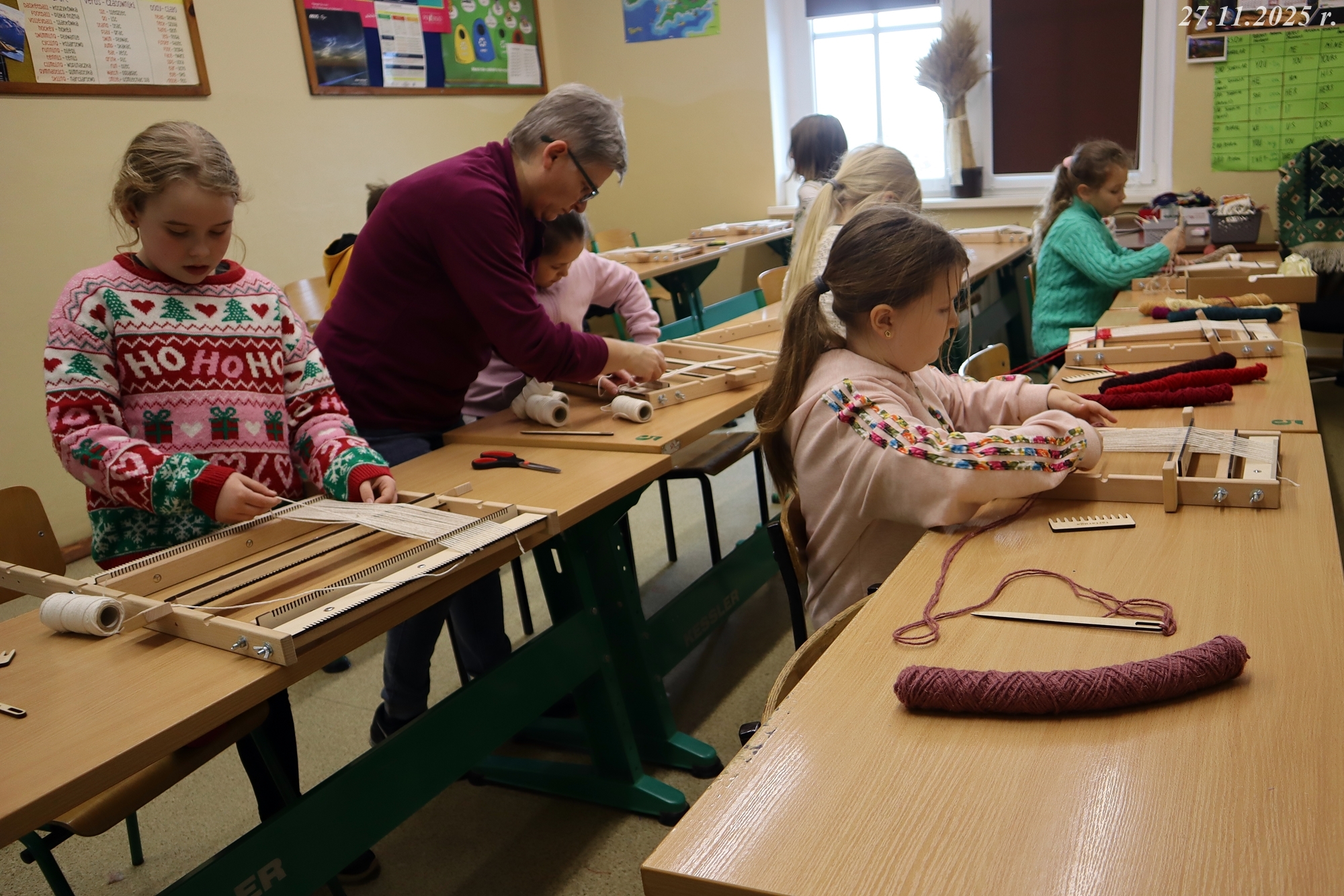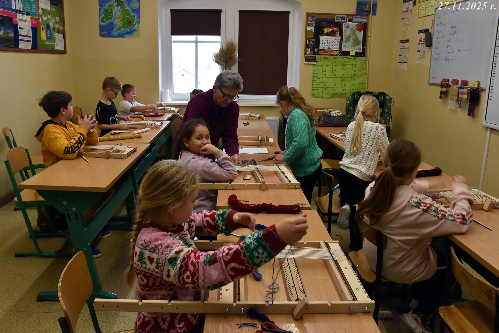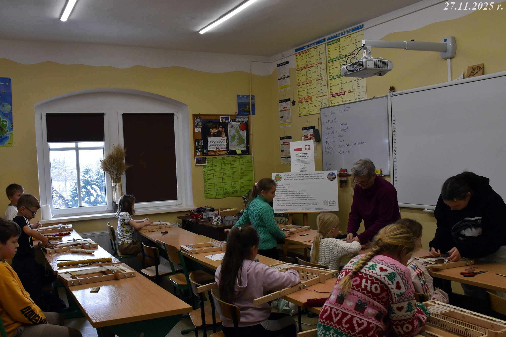 W dniach 24 i 27 listopada 2025 r. w naszej małej, wiejskiej Szkole Podstawowej w Gorzanowie po raz kolejny odbyły się warsztaty tkackie, które są częścią projektu o dawnych rzemiosłach. Dzieci i starsi uczniowie z zapałem i radością kontynuują swoją przygodę z tkactwem, ucząc się od najlepszych! Pani Ewa, z sercem i cierpliwością wspierała młodych adeptów tkactwa, dzieląc się swoją wiedzą i pasją. Co więcej, starsi uczniowie, pomagali młodszym, dodając zajęciom nutki przyjacielskiego wsparcia.