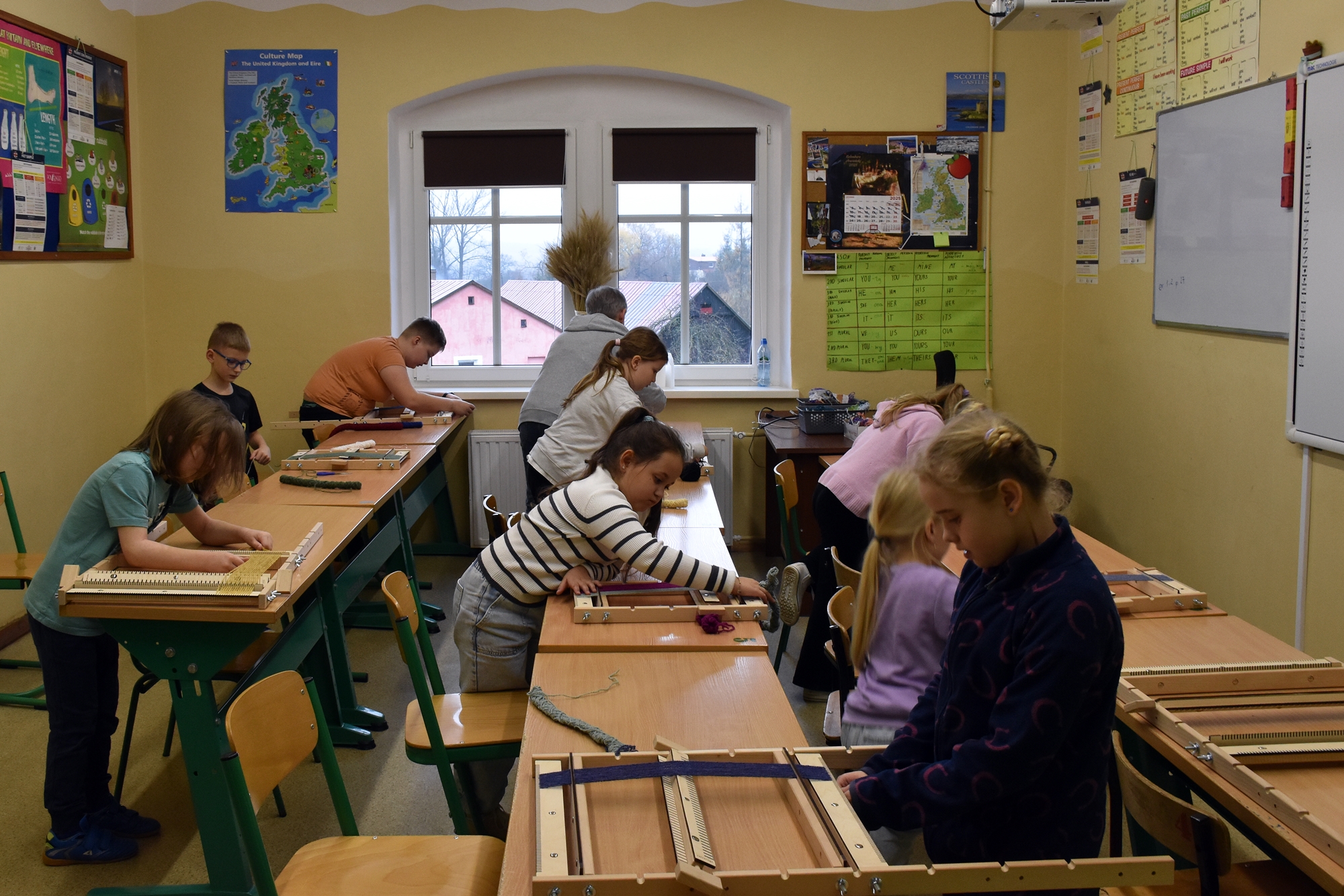 W poniedziałek, 17.11.2025 r. w naszej szkole odbyły się kolejne zajęcia tkackie, które pozwalają naszym uczniom zgłębić tajniki tradycyjnego i zarazem jednego z najstarszych rzemiosł.