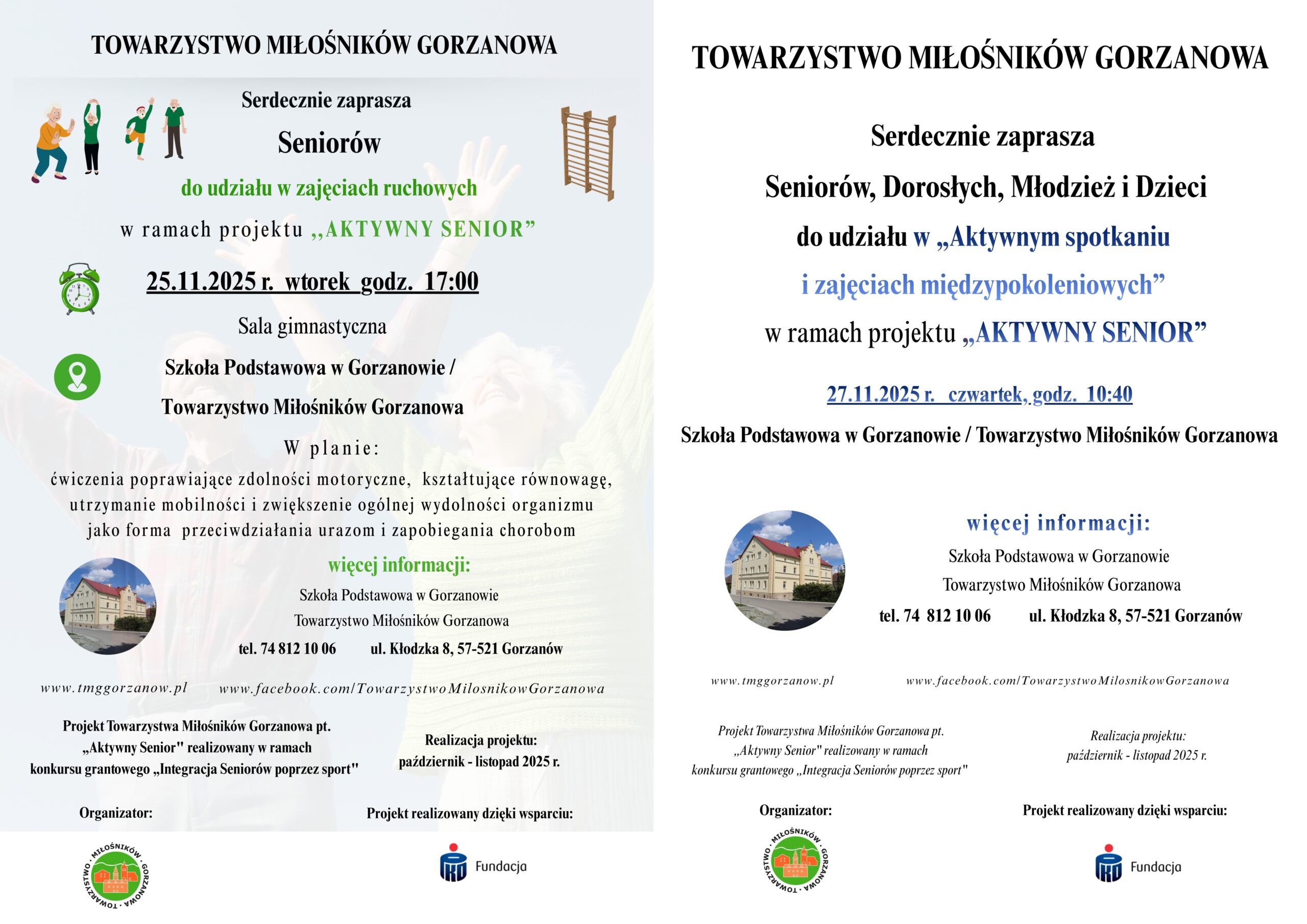 Przed nami kolejne zajęcia w ramach projektu ,,Aktywny Senior” 22 listopada 202522 listopada 2025 przez Towarzystwo Miłośników Gorzanowa