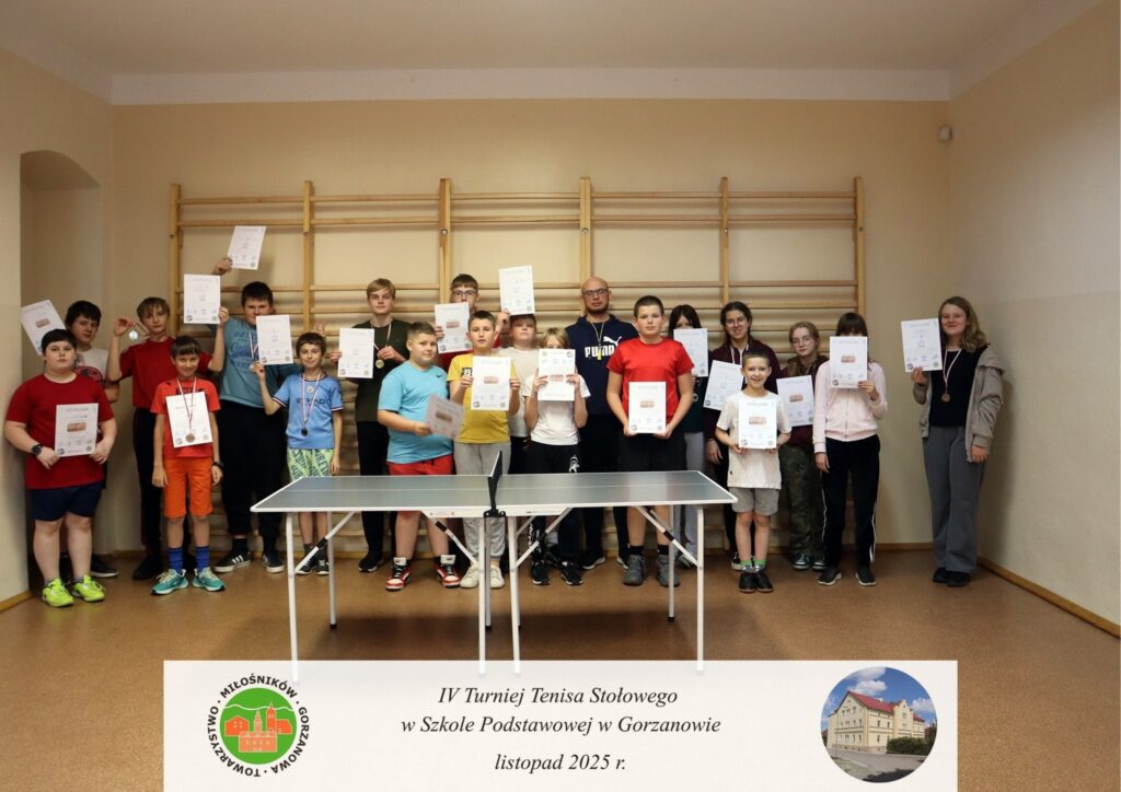 W ubiegłym miesiącu w naszej Szkole Podstawowej w Gorzanowie odbył się IV Turniej Tenisa Stołowego, który zgromadził uczestników z klas IV-VIII, rozgrywających spotkania w czterech kategoriach.