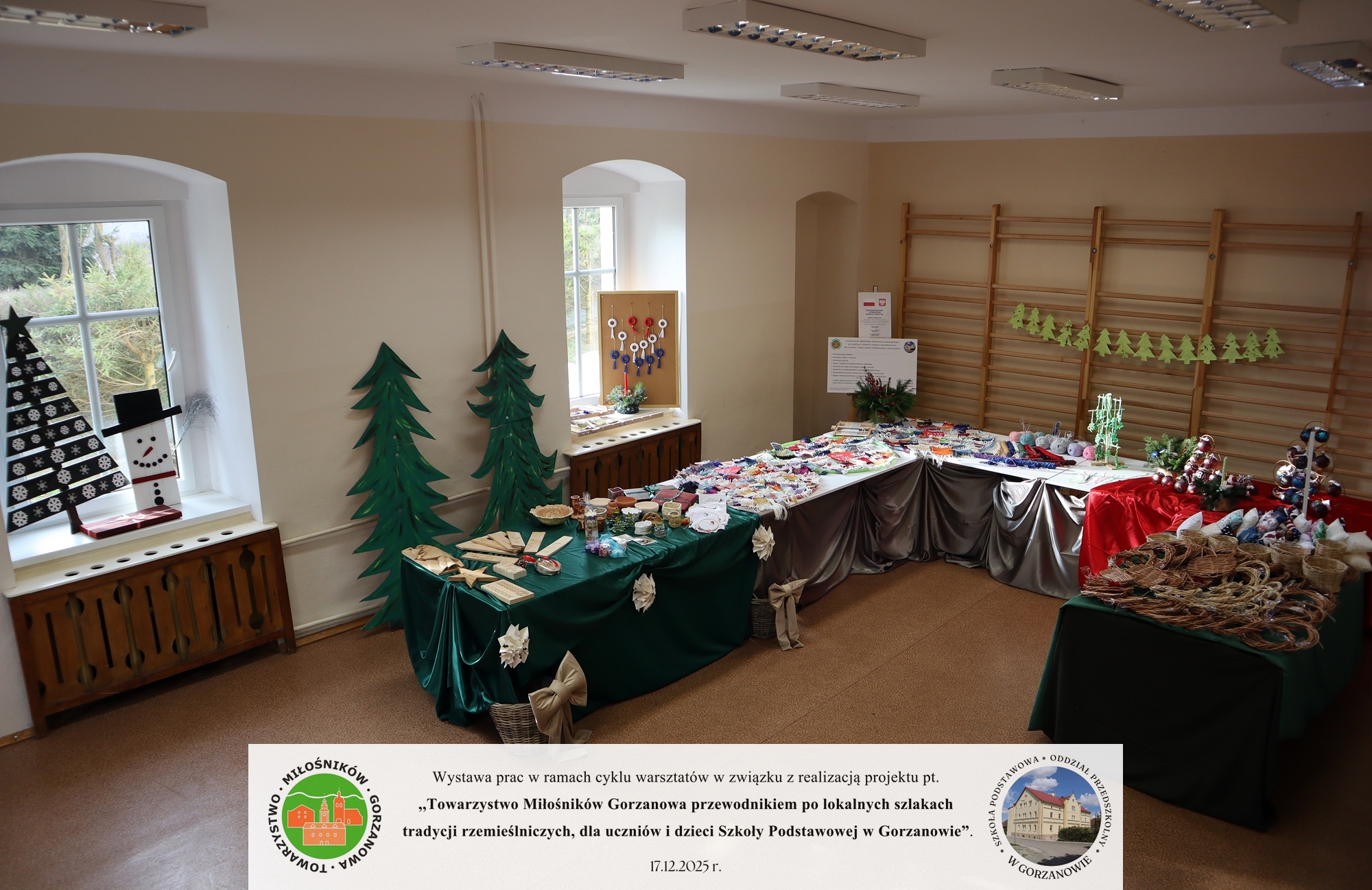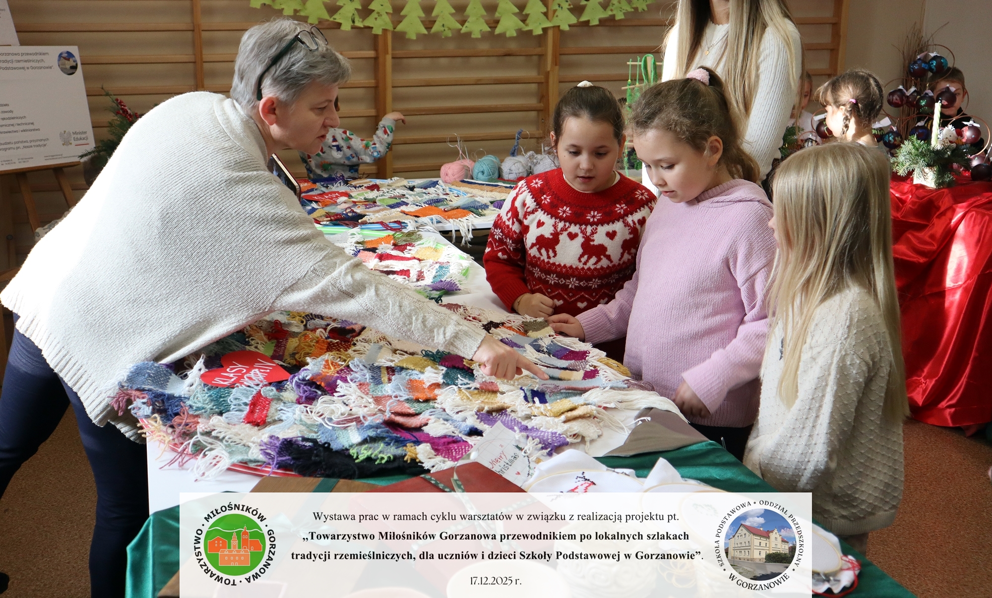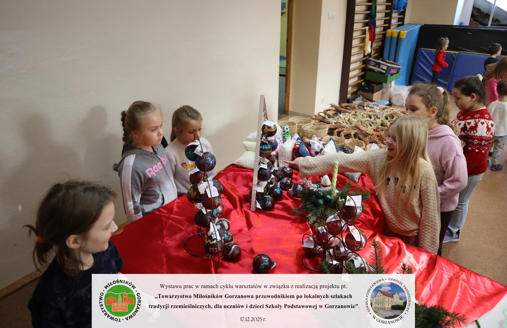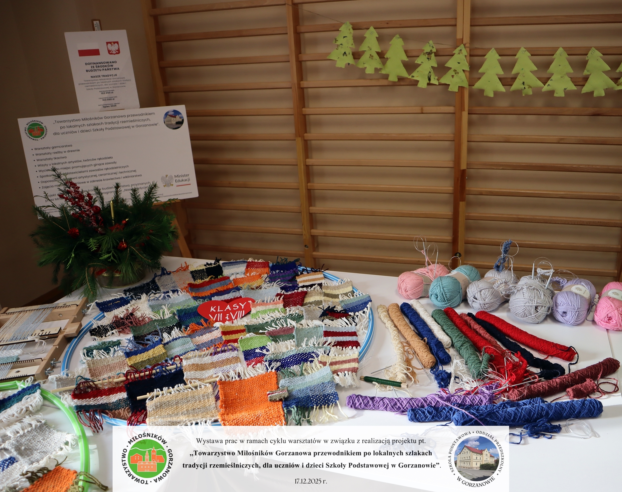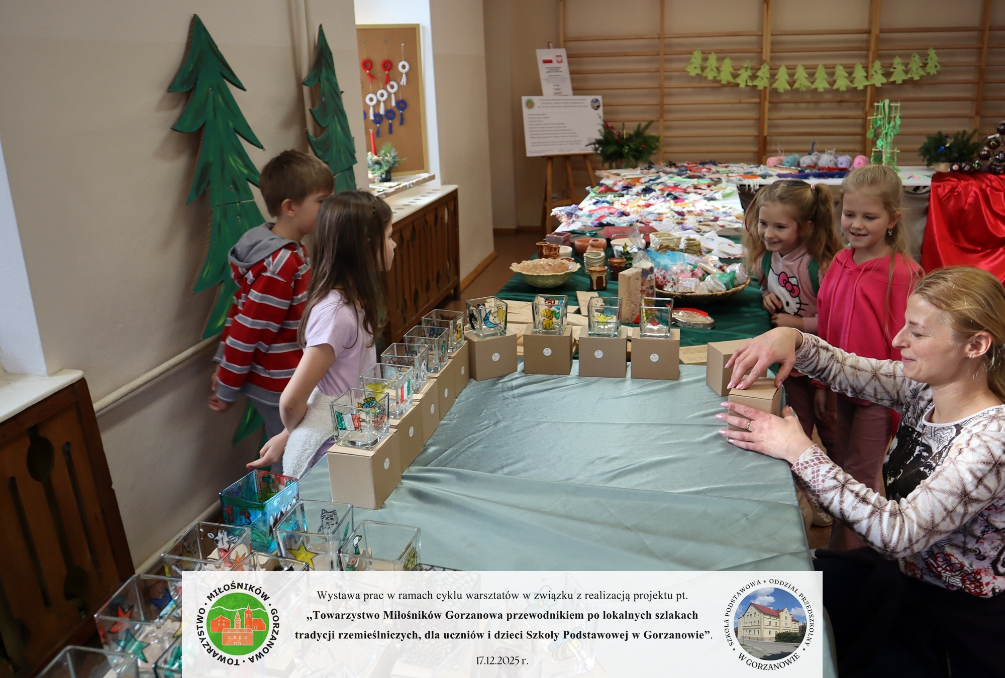 17 grudnia 2025 roku w sali gimnastycznej Szkoły Podstawowej odbyła się niezwykła wystawa prac dzieci gorzanowskiej placówki, uczestniczących w cyklach zajęć i warsztatów nawiązujących do tradycji rzemieślniczych. Wystawa stanowiła zwieńczenie i kolejną formę udokumentowania projektu Towarzystwa Miłośników Gorzanowa, który trwał od czerwca 2025 r. do grudnia br. Wystawa prac zgromadziła młodych twórców, którzy mieli okazję podziwiać swoje, kolegów oraz koleżanek, dzieła z zakresu tkactwa, wikliniarstwa, garncarstwa, rzeźby w drewnie, szklarstwa, krawiectwa, makramy, decoupage, szydełkowania, robótek na drutach, haftu, zdobienia bombek czy ręcznie wykonywanych mydełek zapachowych.