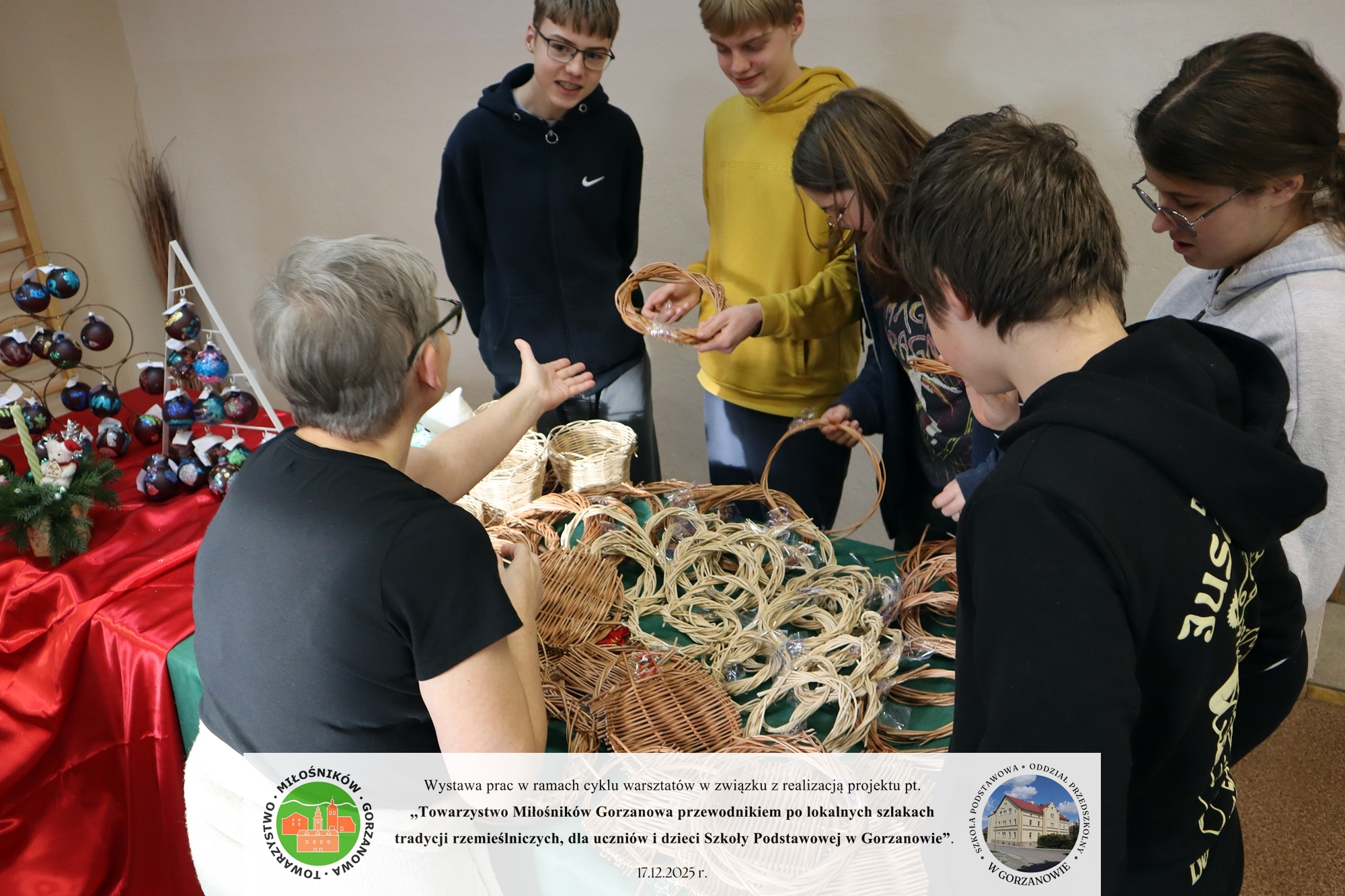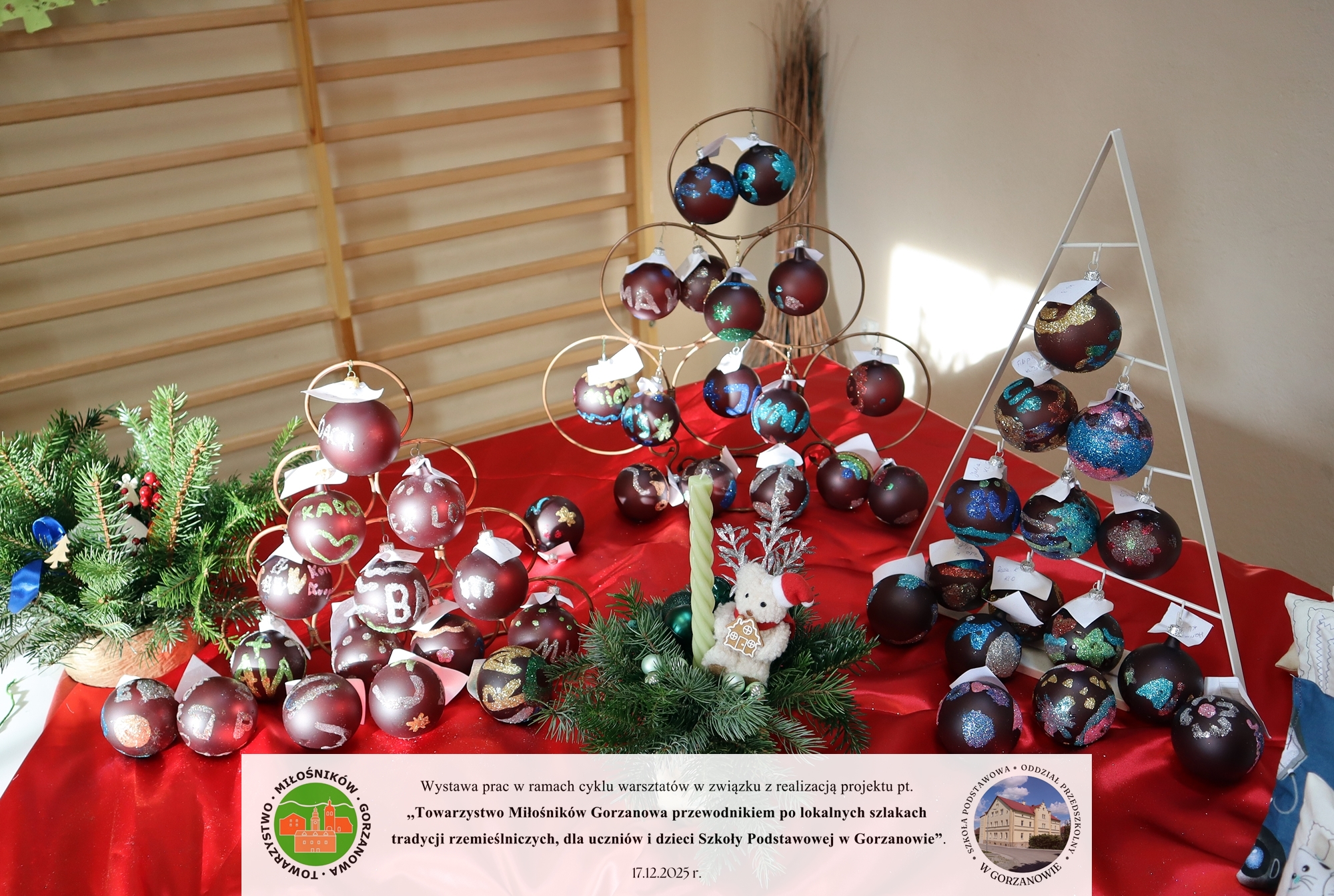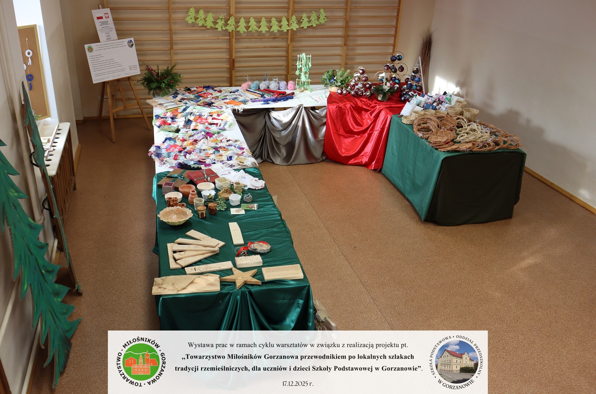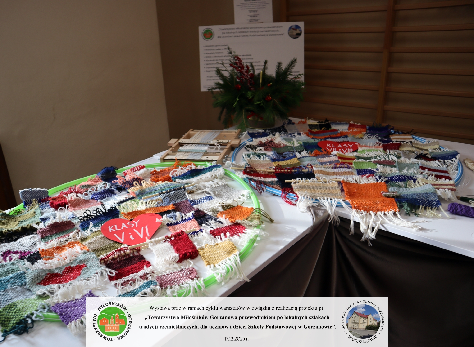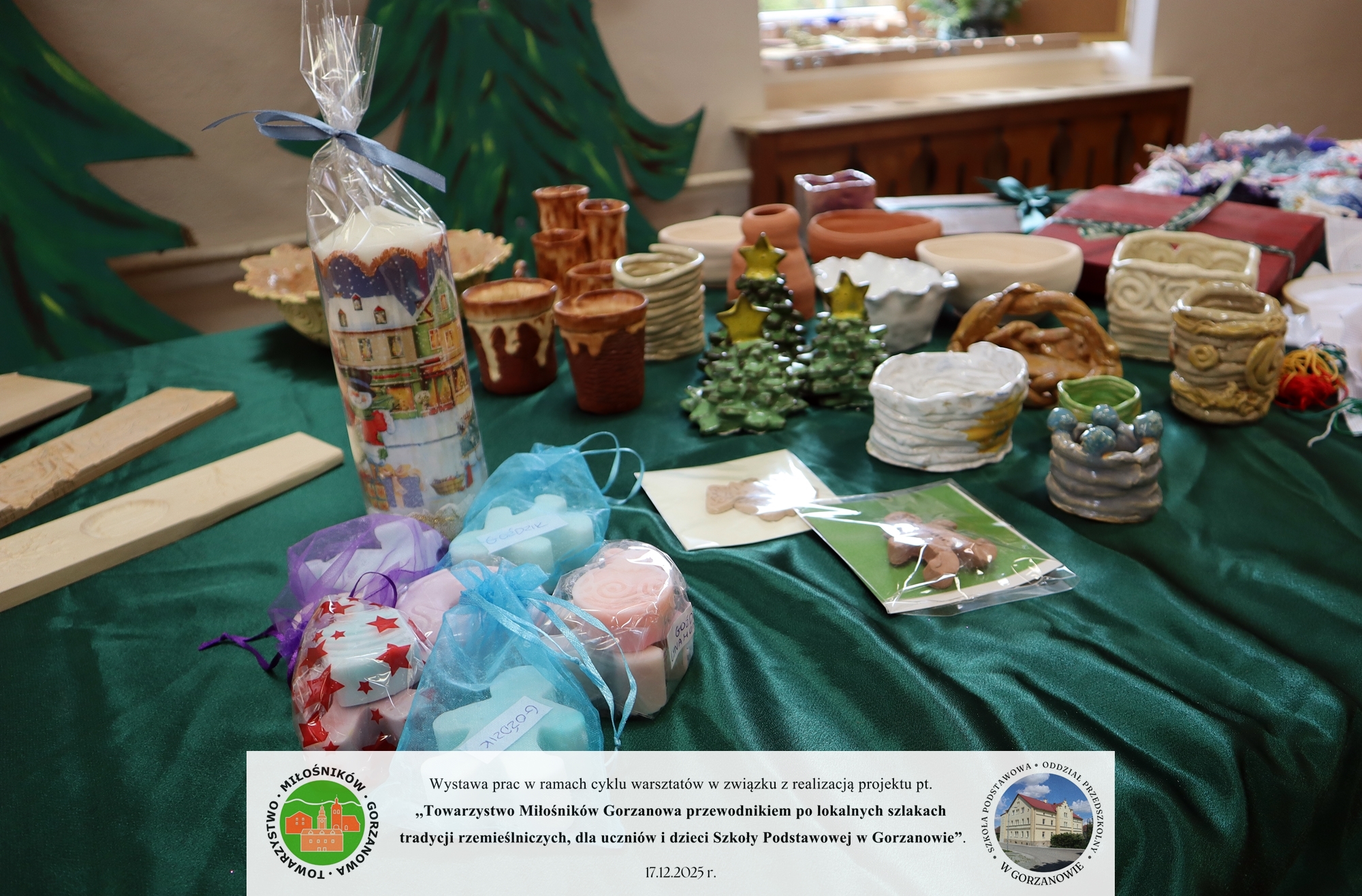 17 grudnia 2025 roku w sali gimnastycznej Szkoły Podstawowej odbyła się niezwykła wystawa prac dzieci gorzanowskiej placówki, uczestniczących w cyklach zajęć i warsztatów nawiązujących do tradycji rzemieślniczych. Wystawa stanowiła zwieńczenie i kolejną formę udokumentowania projektu Towarzystwa Miłośników Gorzanowa, który trwał od czerwca 2025 r. do grudnia br. Wystawa prac zgromadziła młodych twórców, którzy mieli okazję podziwiać swoje, kolegów oraz koleżanek, dzieła z zakresu tkactwa, wikliniarstwa, garncarstwa, rzeźby w drewnie, szklarstwa, krawiectwa, makramy, decoupage, szydełkowania, robótek na drutach, haftu, zdobienia bombek czy ręcznie wykonywanych mydełek zapachowych.