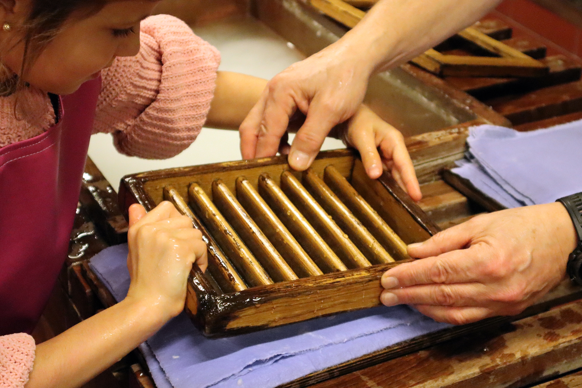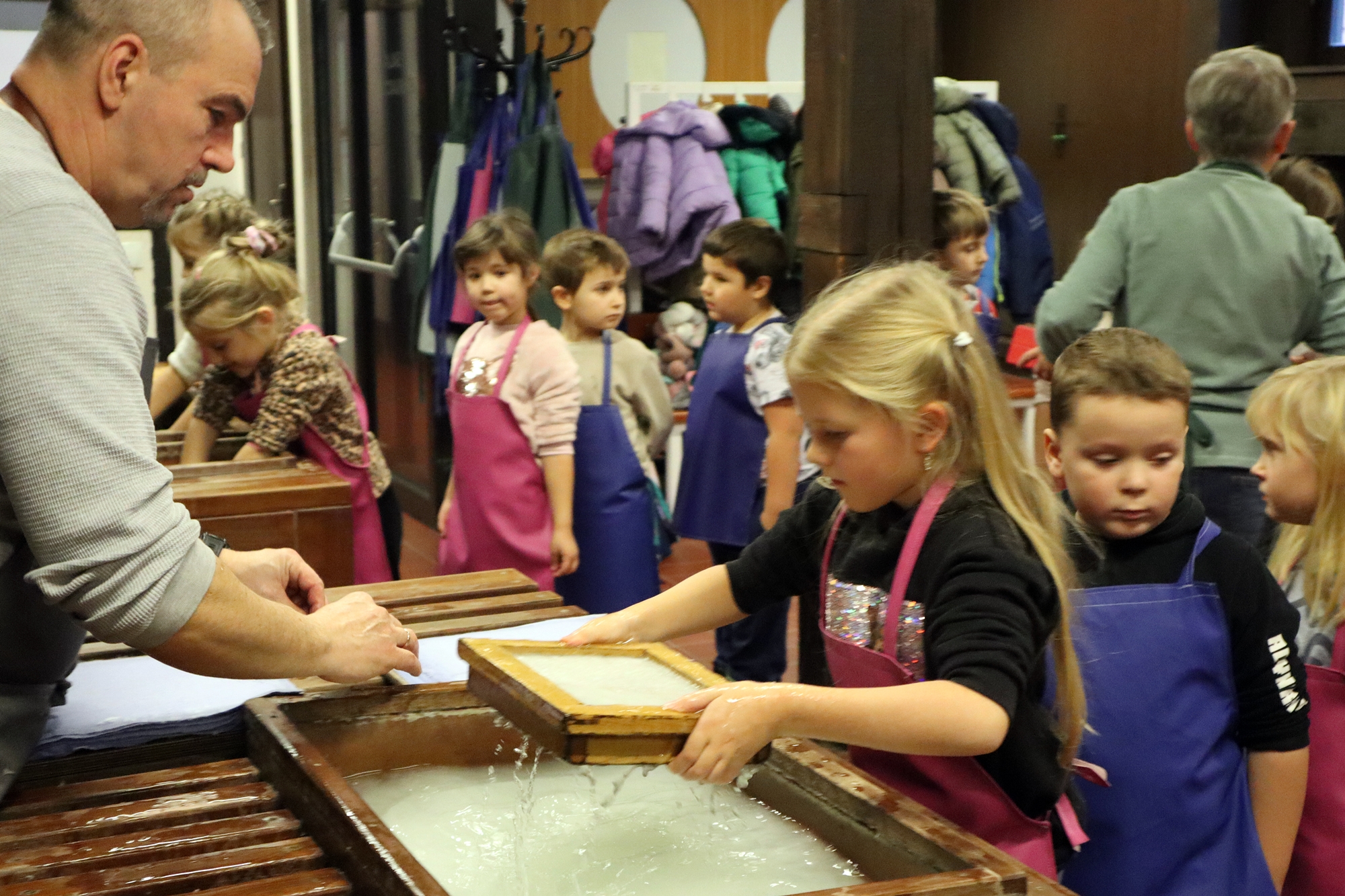 Podczas warsztatów dzieci i dorośli z zapałem przyklejali wycięte wzory na magnesy i starannie ozdabiali swoje prace brokatem, co dodawało im blasku i wyjątkowości. Na zakończenie wszystkie magnesy zostały zabezpieczone lakierem, co pozwoliło utrwalić ich piękno na dłużej. Atmosfera była pełna zaangażowania, radości i wzajemnej pomocy