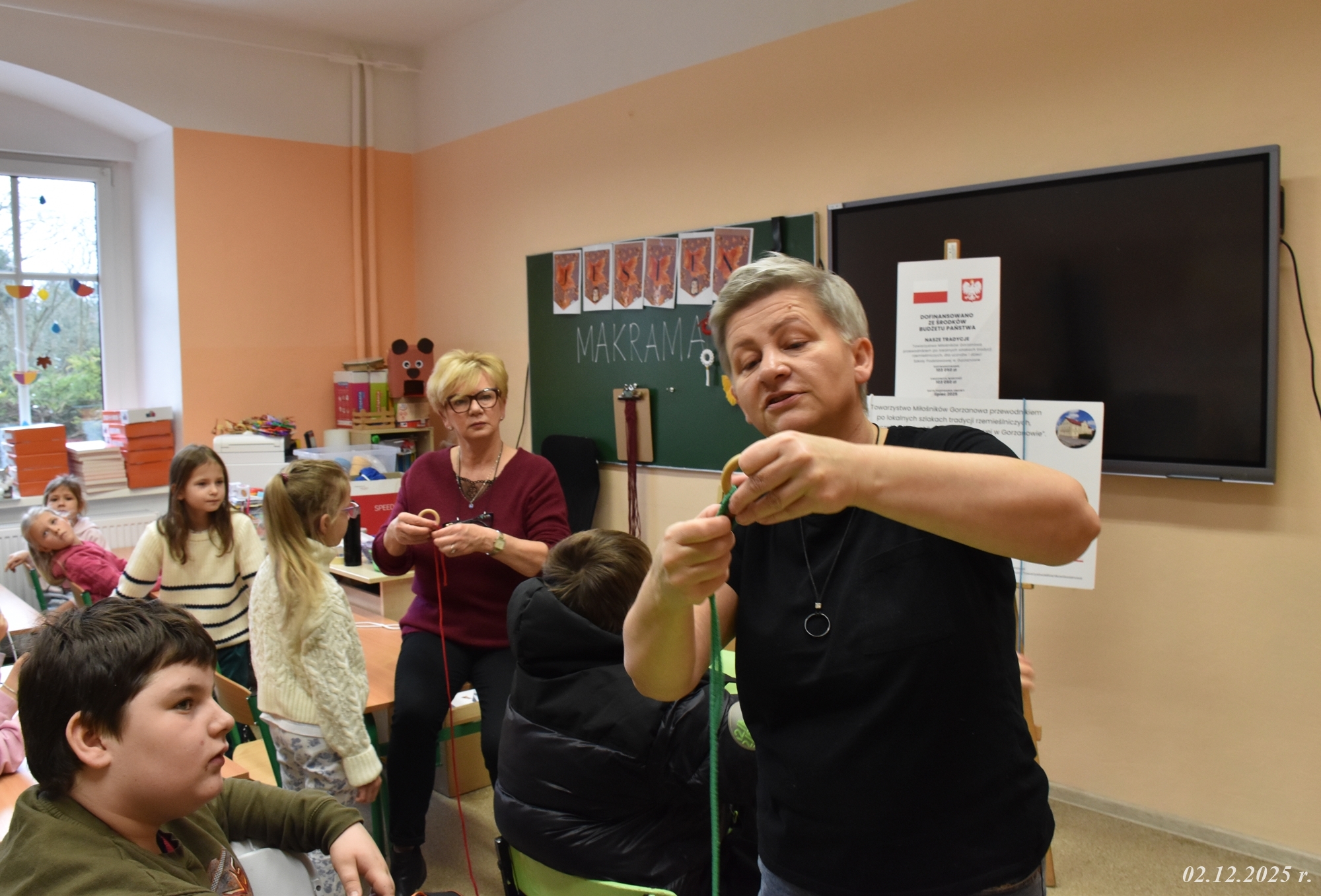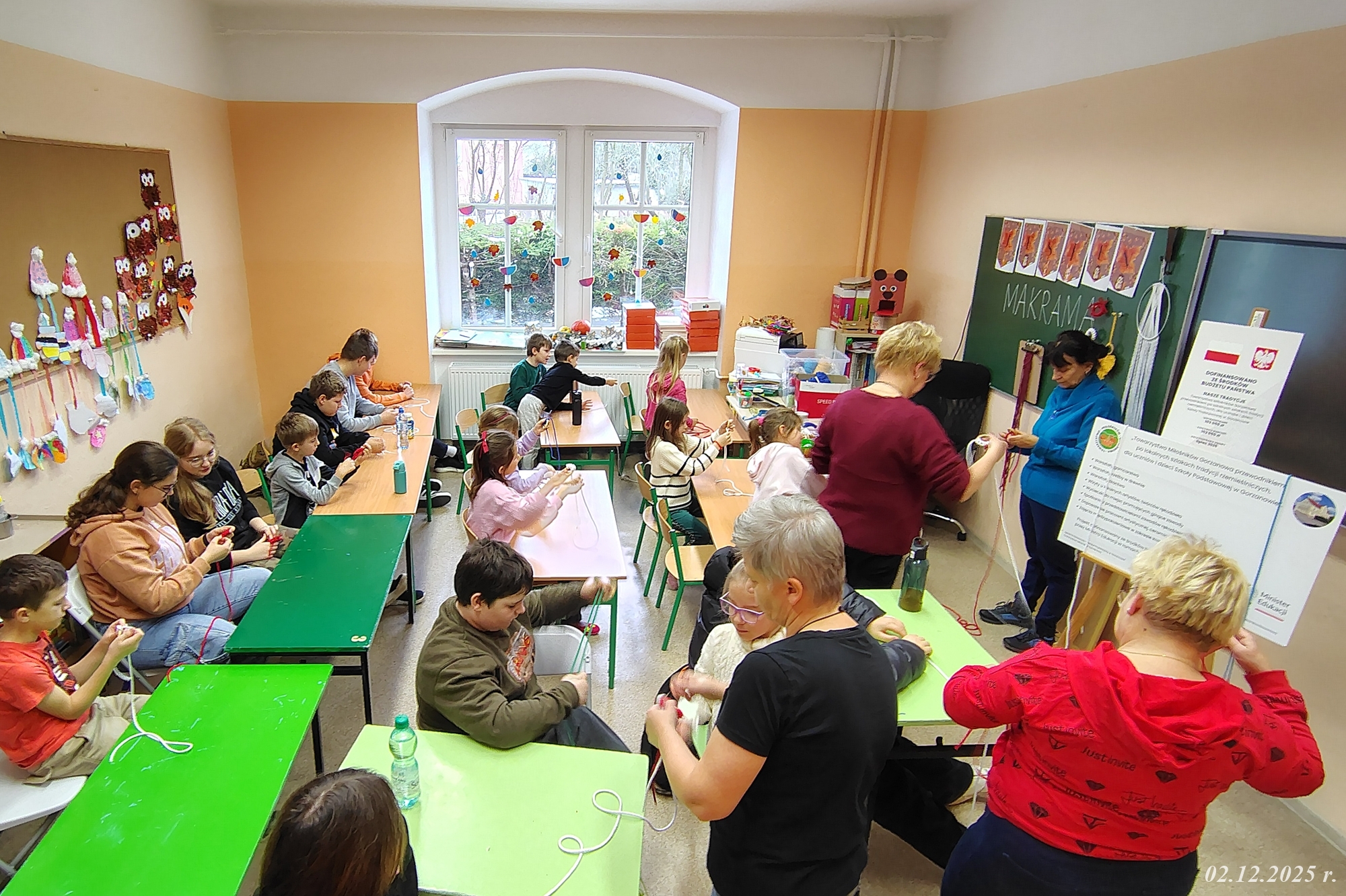 We wtorek i środę (02-03.12.2025 r.) w Szkole Podstawowej w Gorzanowie odbyły się zajęcia z makramy, które poprowadziła Pani Ewa w ramach projektu edukacyjnego poświęconego tradycjom rzemieślniczym. Sale lekcyjne zamieniły się w miejsce pracy twórczej niczym artystyczne atelier, gdzie dzieci z zapałem tworzyły swoje pierwsze plecionki. Pod okiem pani Ewy, która zarażała wszystkich swoją pasją i entuzjazmem, uczniowie uczyli się podstawowych węzłów, a nawet bardziej skomplikowanych splotów. Radość dzieci była nie do opisania, gdy udało im się stworzyć własne, kolorowe ozdoby. Zajęcia nie tylko rozwinęły ich zdolności manualne, ale także pozwoliły docenić piękno tradycyjnego rzemiosła.🙂