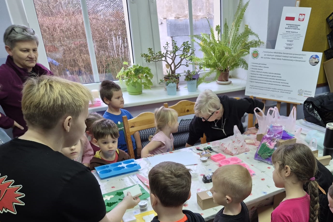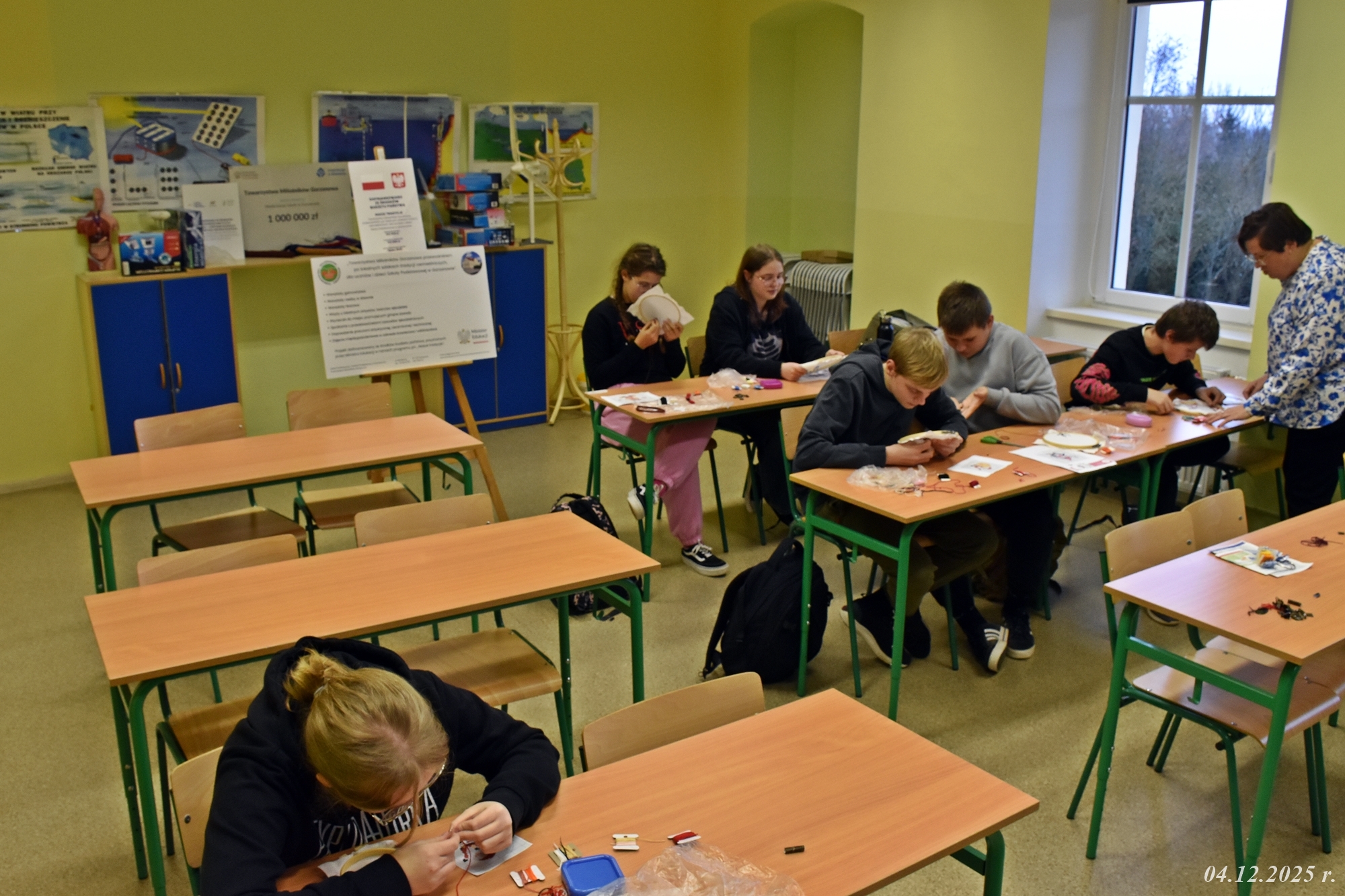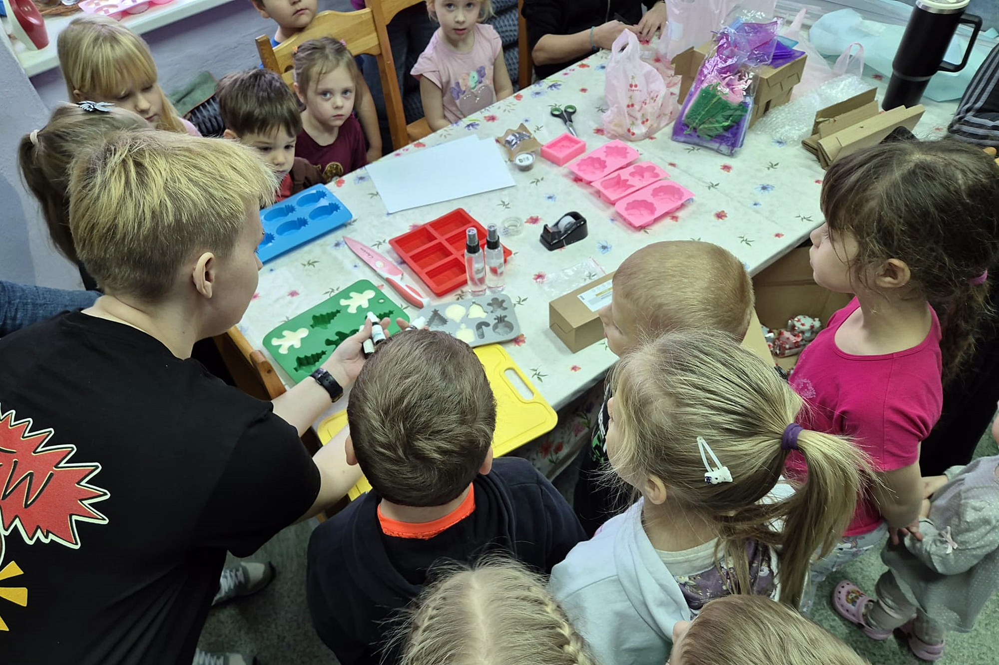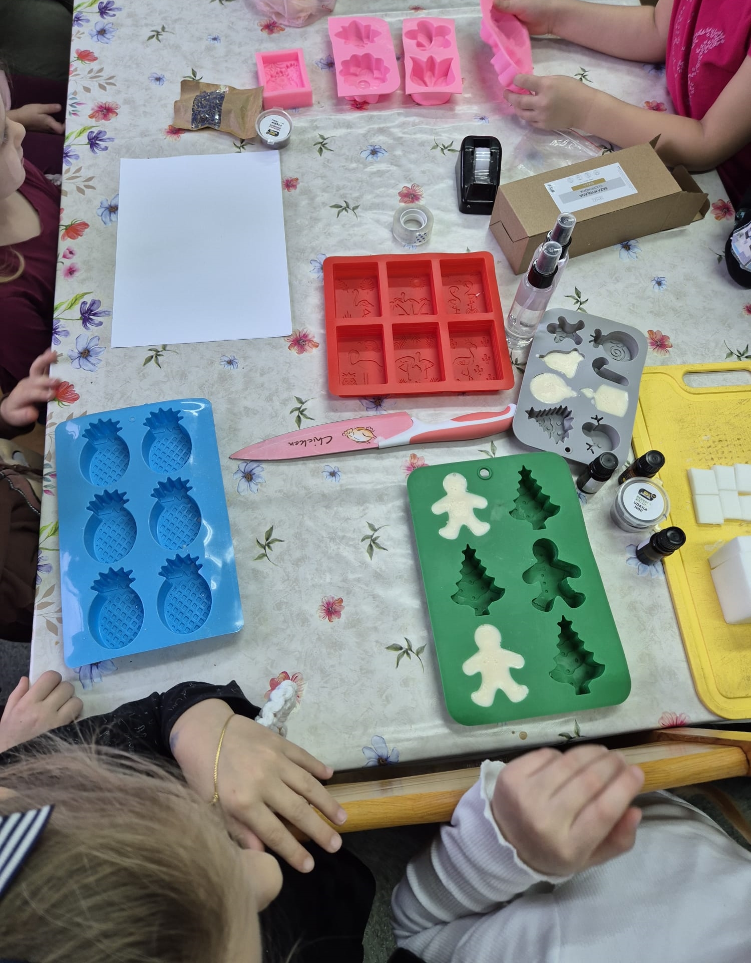 We wtorek (09.12.2025 r.) w naszej małej Szkole Podstawowej w Gorzanowie odbyły się warsztaty w ramach projektu edukacyjnego dotyczącego tradycji rzemieślniczych. Tematem przewodnim była sztuka tworzenia ręcznie wykonanych mydełek zapachowych. Wydarzenie to przyciągnęło uwagę nie tylko naszych dzieci, alei nauczycieli i pracowników, którzy z zainteresowaniem przyglądali się pracy swojej byłej uczennicy, absolwentki, Pani Wiktorii.