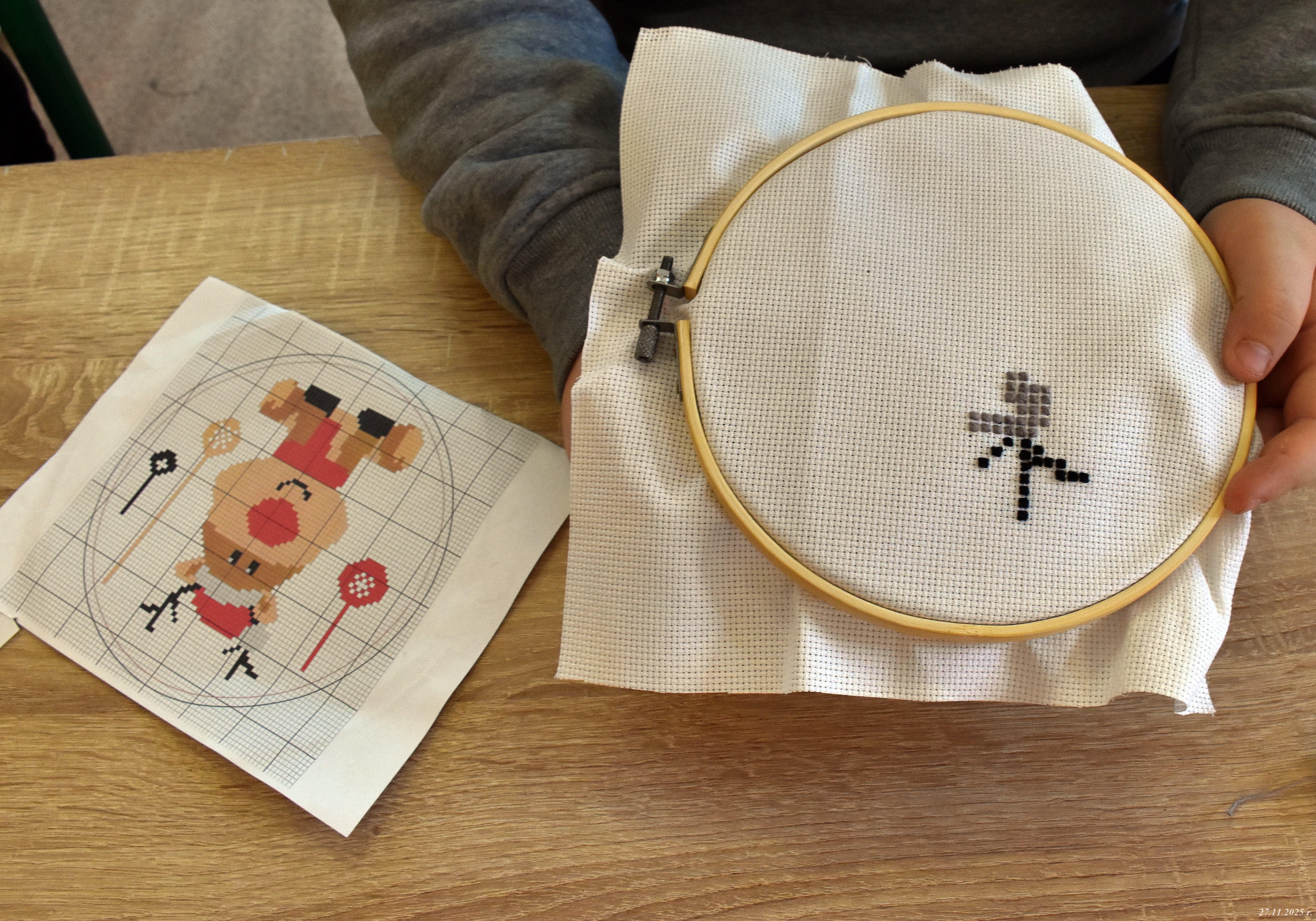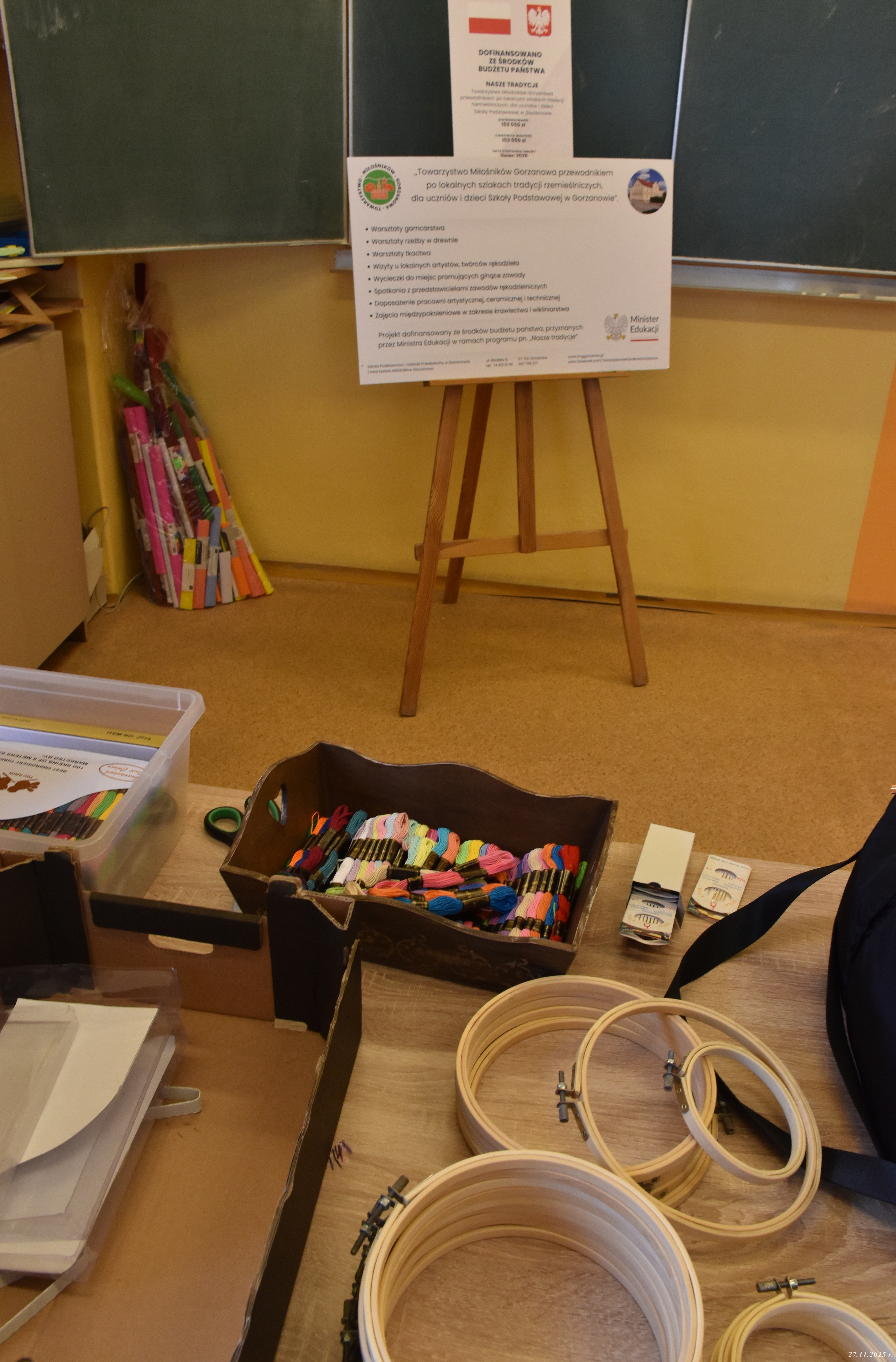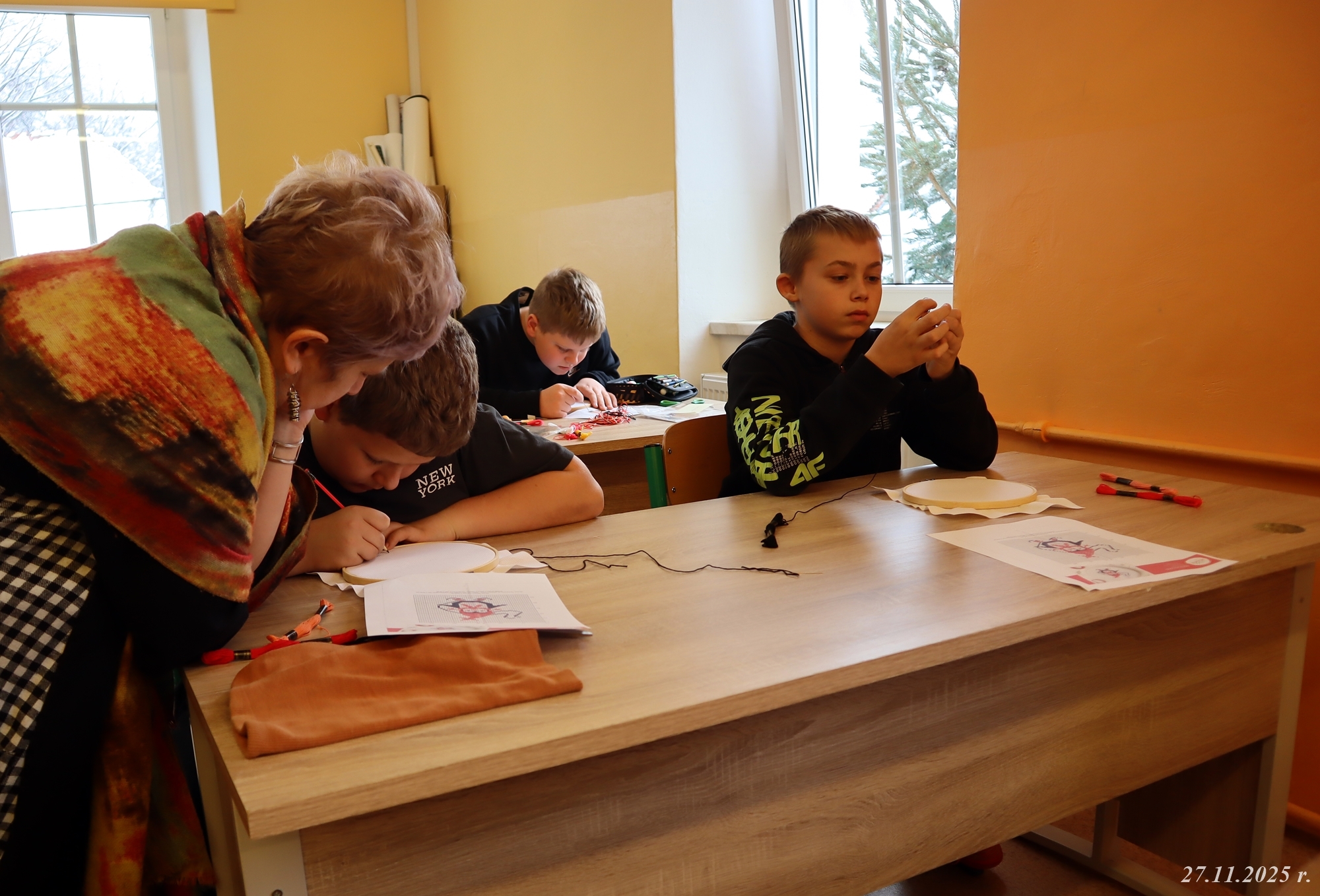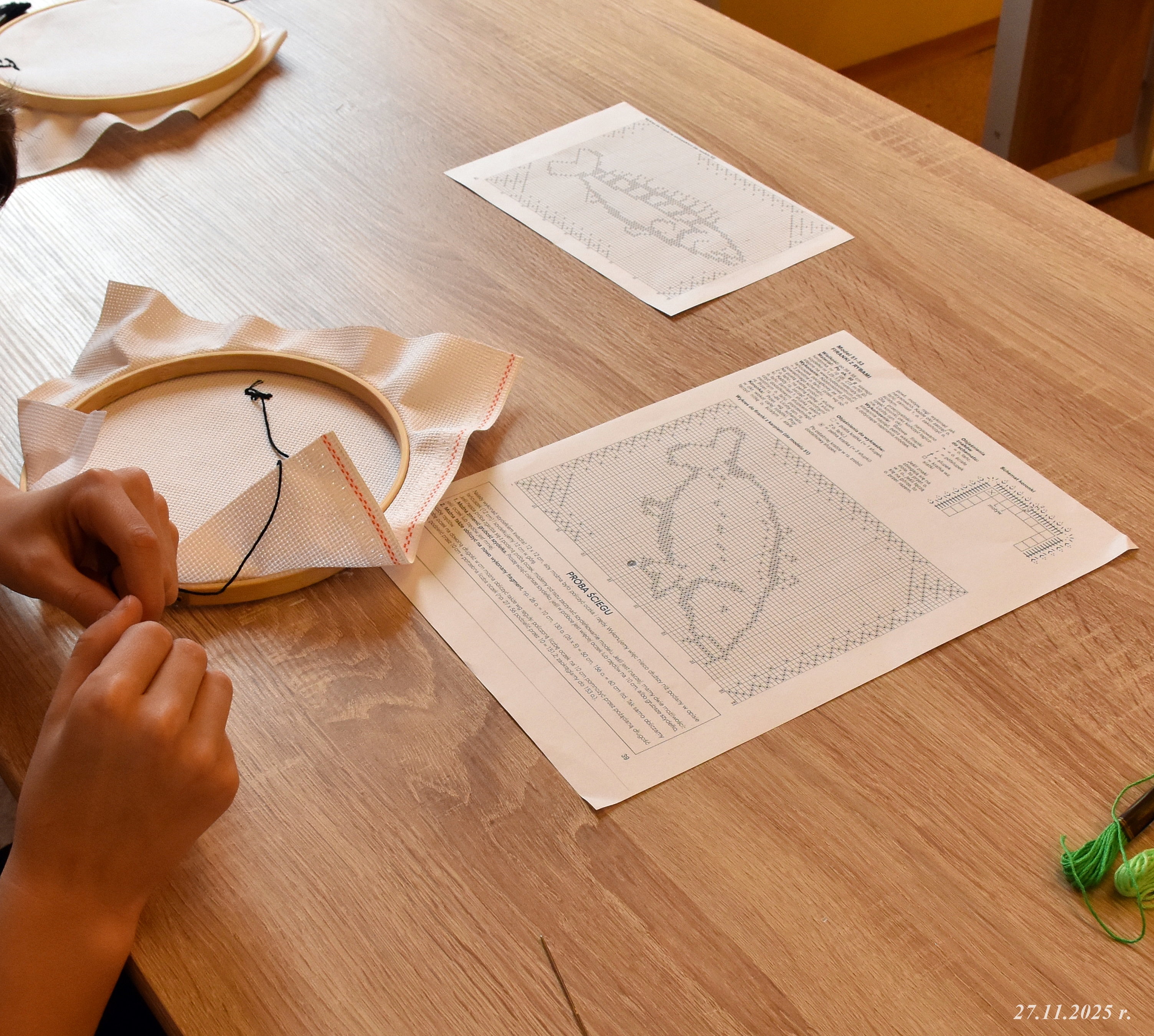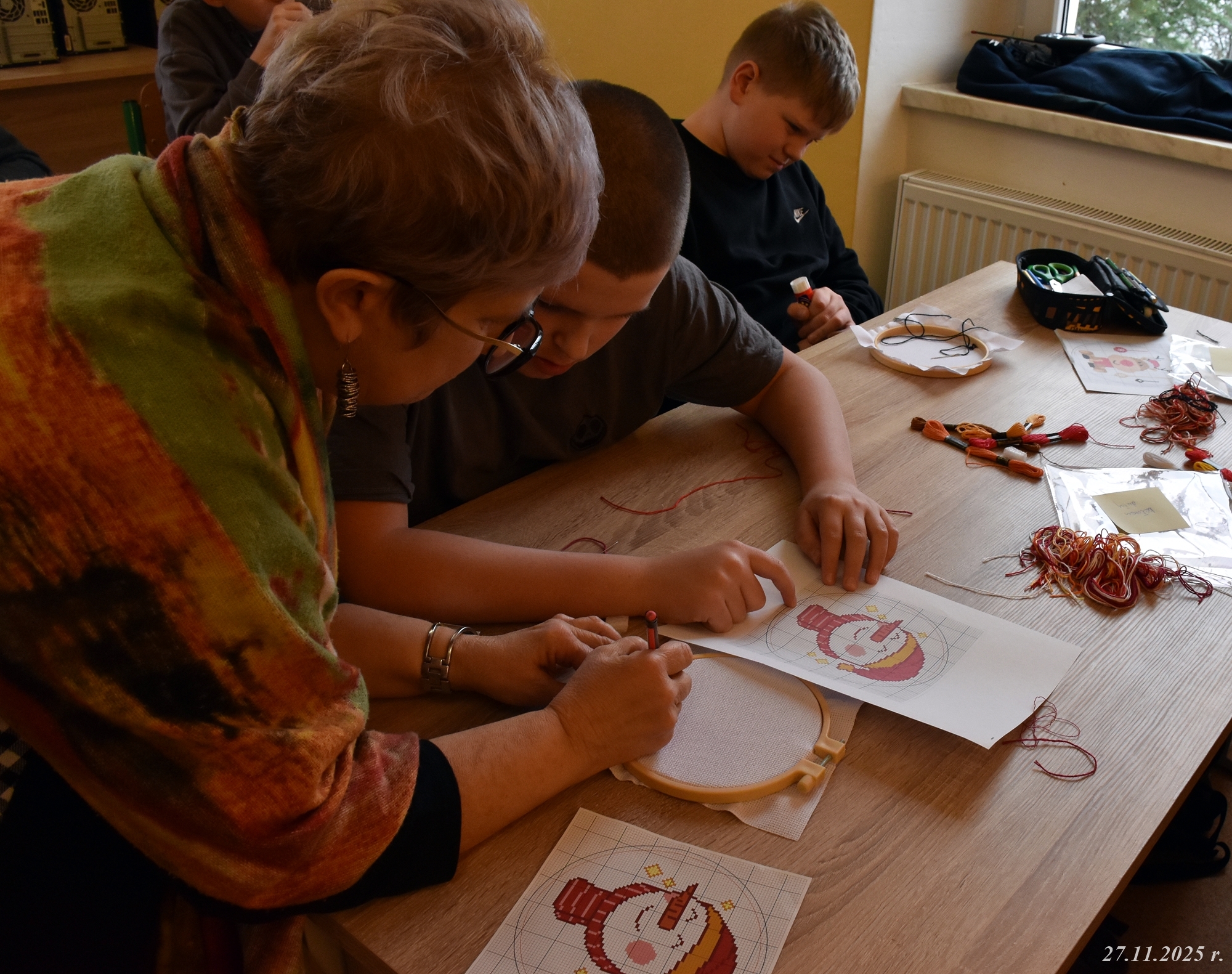 Wspaniałe nici międzypokoleniowe zostały splecione podczas wyjątkowych zajęć nauki haftu w Szkole Podstawowej w Gorzanowie. 27 i 28 listopada oraz 04 grudnia 2025 r. odbyły się wyjątkowe zajęcia, które kolejny raz przywiodły na myśl dawne tradycje rzemieślnicze. Dzieci z zapałem wyszywały pierwsze ściegi pod kierunkiem Pani Ani i wsparciu Pani Jolanty oraz pod czujnym i życzliwym okiem Pani Natalii, a każda przekazana technika była jak magiczna nić łącząca pokolenia. Uczestnicy, zarówno Ci młodsi, jak i starsi, z zapałem tworzyli swoje pierwsze haftowane dzieła, a każdy krzyżyk na płótnie stawał się kolejnym elementem doskonalenia swoich zdolności manualnych. Mali artyści mieli okazję uczyć się jak posługiwać się igłą i nicią, przy wykorzystaniu drewnianych tamborków do haftowania, kolorowych mulin i licznie otrzymanych wzorów. Nie zabrakło motywów zimowych, świątecznych, roślinnych a nawet obrazków z jednorożcem i z karpiem! Wykonywanie swoich haftowanych dzieł, uczniowie zamierzają kontynuować pielęgnując tę piękną rzemieślniczą tradycję…