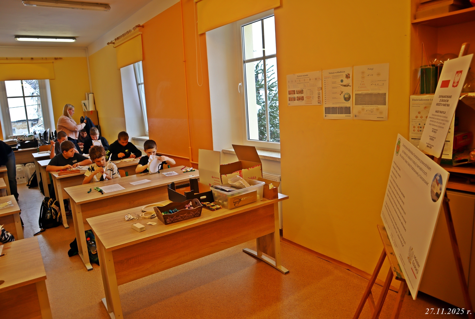 Prace naszych dzieci podziwiali również rodzice, opiekunowie czy też pracownicy naszej Szkoły, co dodatkowo wzmocniło poczucie dumy z osiągnięć całej grupy. Bardzo cieszymy się z efektów prac uczniów, a przede wszystkim z ich entuzjazmu wynikającego z możliwości uczestnictwa w innowacyjnej formie projektu edukacyjnego, który nie tylko wzbogacił ich wiedzę, ale także wzmocnił zdolności manualne, co było widoczne na wystawie prac.