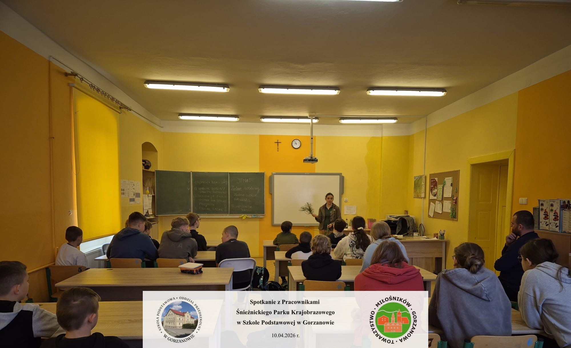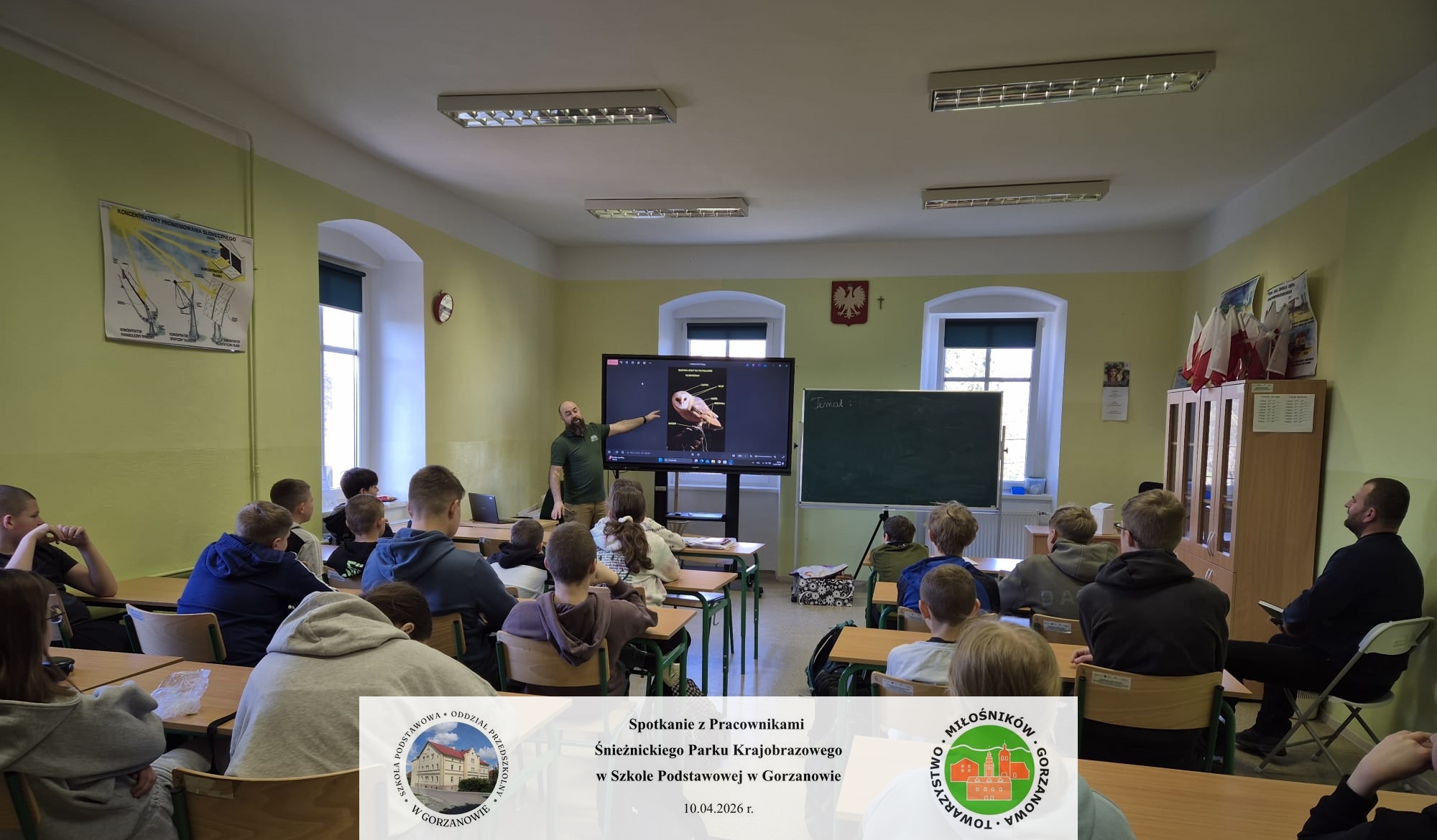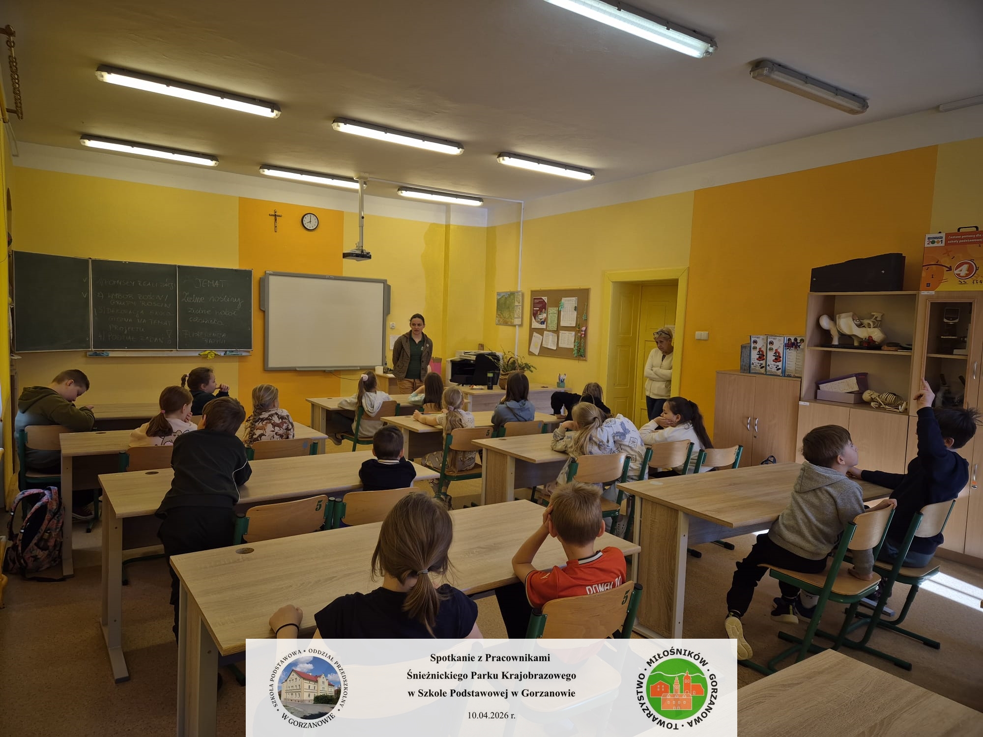 Wiosenny, deszczowy poranek, wcale nie musi być ponury i smutny. Nauczyciele w Szkole w Gorzanowie, wiedzą, jak urozmaicić swoim wychowankom dzień i odpowiednio zadbać o ich dobrostan psychiczny. Odpowiadając na zainteresowania i potrzeby uczniów Naszej Szkoły, 10 kwietnia br. odwiedzili po raz kolejny cudowni i kompetentni specjaliści, tym razem ze Śnieżnickiego Parku Krajobrazowego, co było też związane z tematyką trwającego początkiem miesiąca Uczniowskiego Projektu Edukacyjnego w naszej placówce.