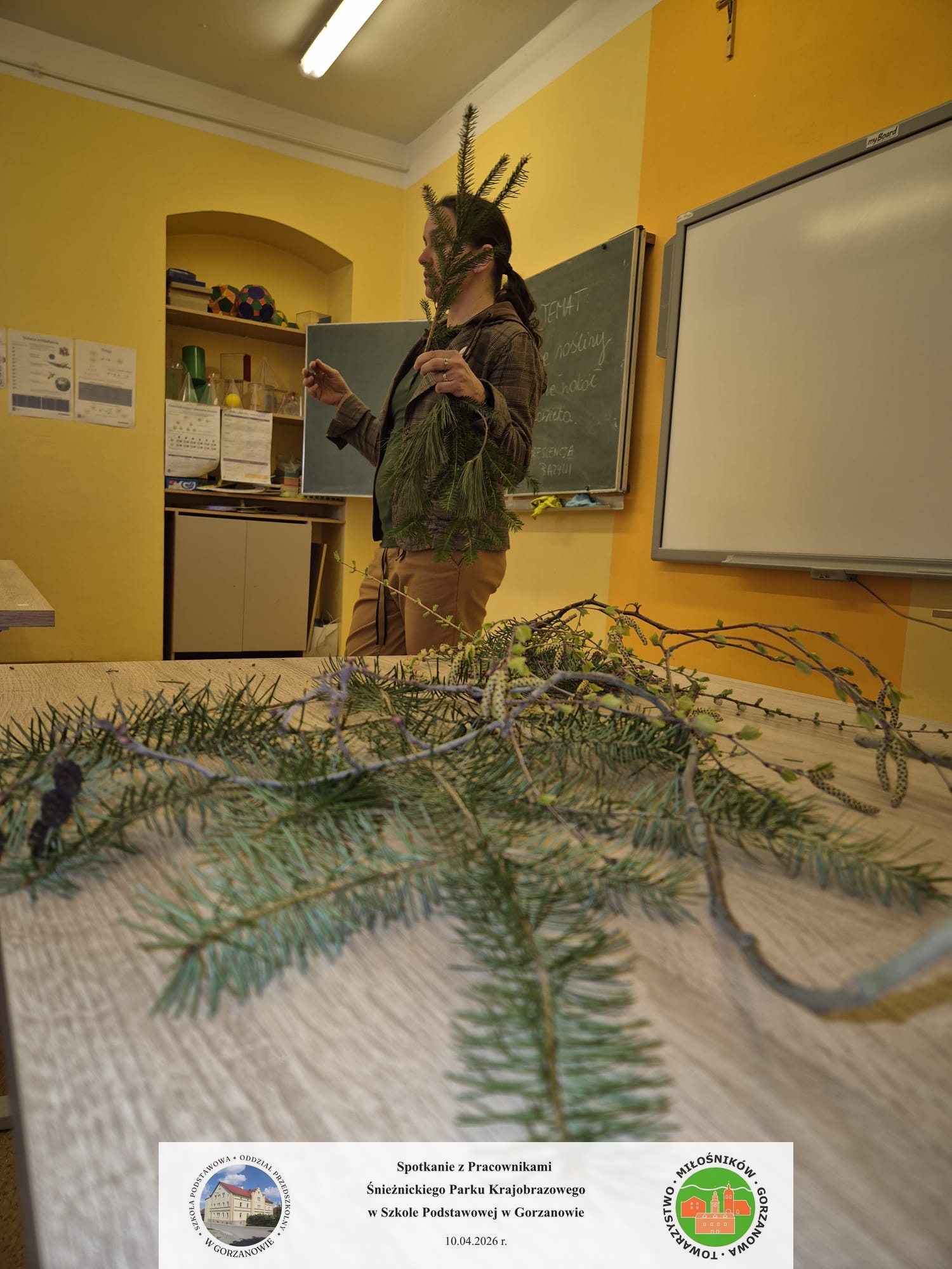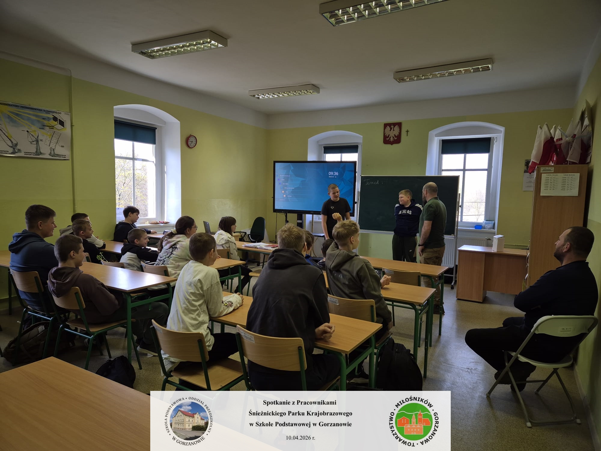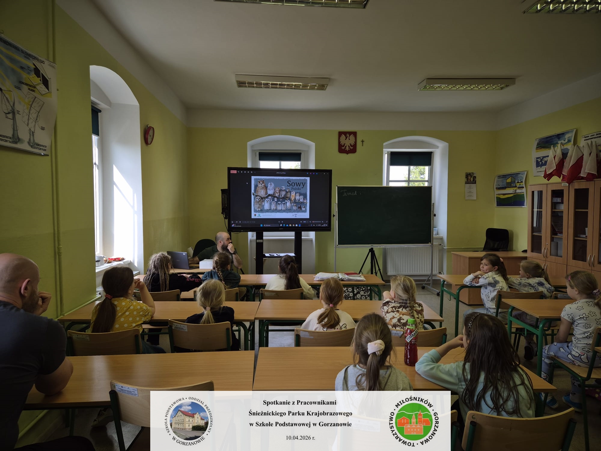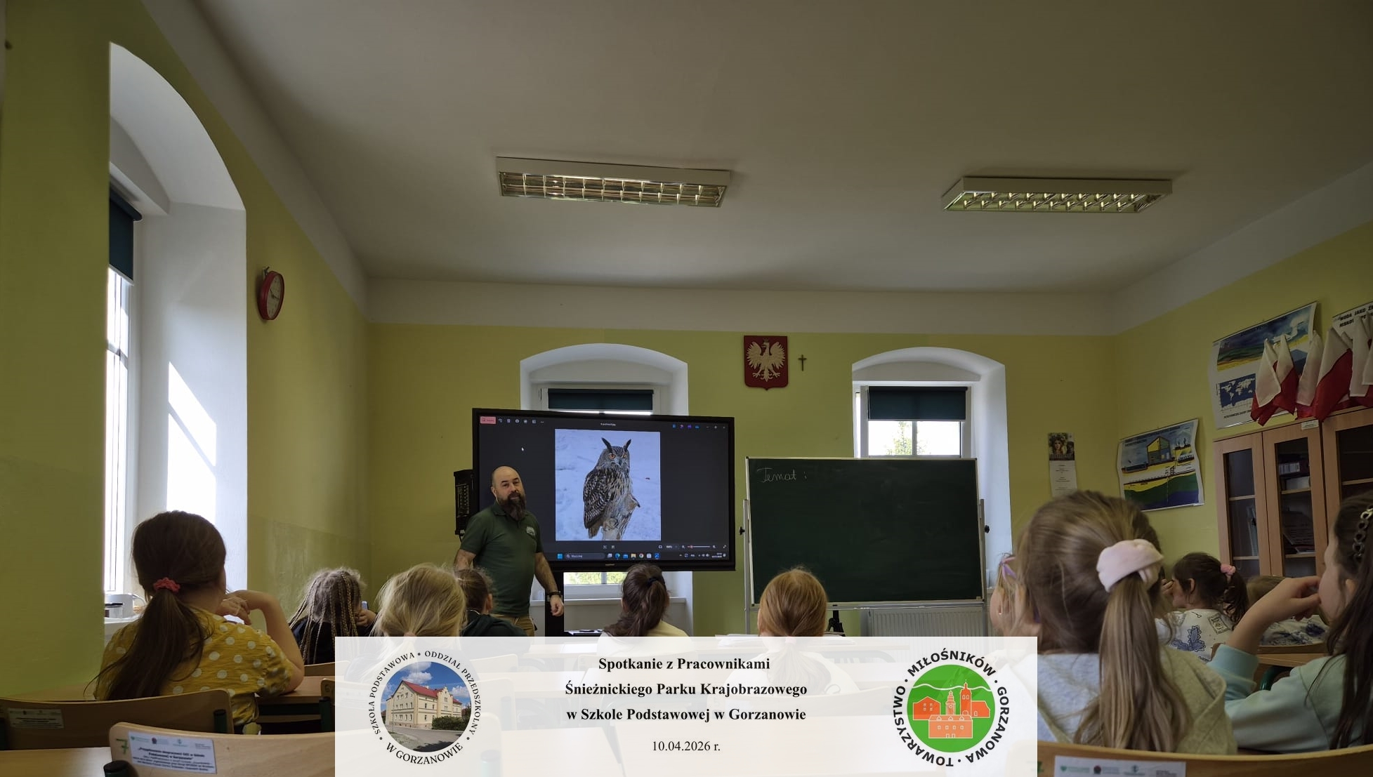 Wiosenny, deszczowy poranek, wcale nie musi być ponury i smutny. Nauczyciele w Szkole w Gorzanowie, wiedzą, jak urozmaicić swoim wychowankom dzień i odpowiednio zadbać o ich dobrostan psychiczny. Odpowiadając na zainteresowania i potrzeby uczniów Naszej Szkoły, 10 kwietnia br. odwiedzili po raz kolejny cudowni i kompetentni specjaliści, tym razem ze Śnieżnickiego Parku Krajobrazowego, co było też związane z tematyką trwającego początkiem miesiąca Uczniowskiego Projektu Edukacyjnego w naszej placówce.